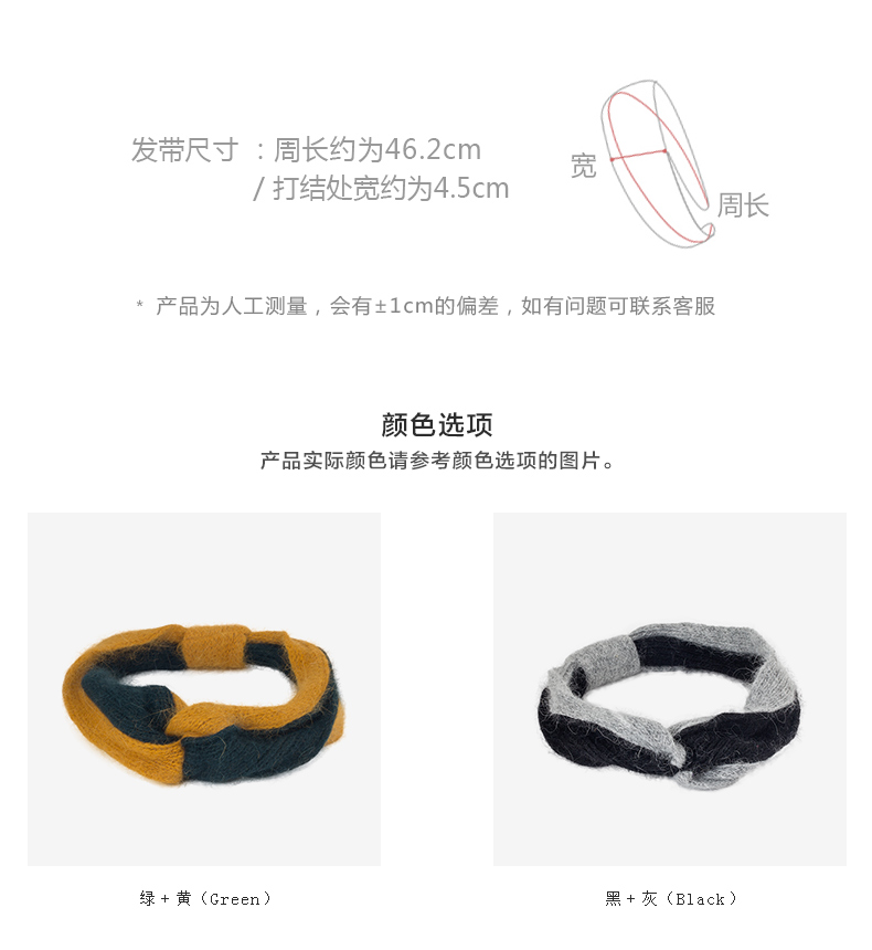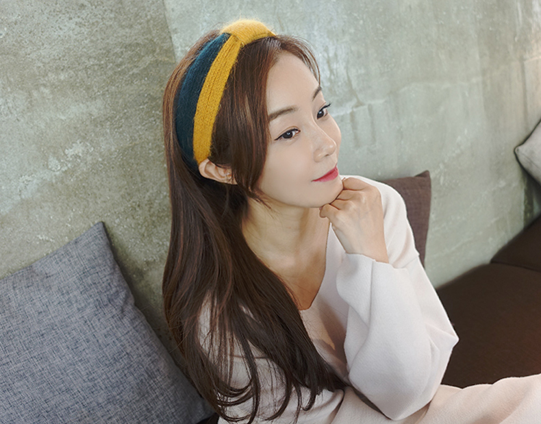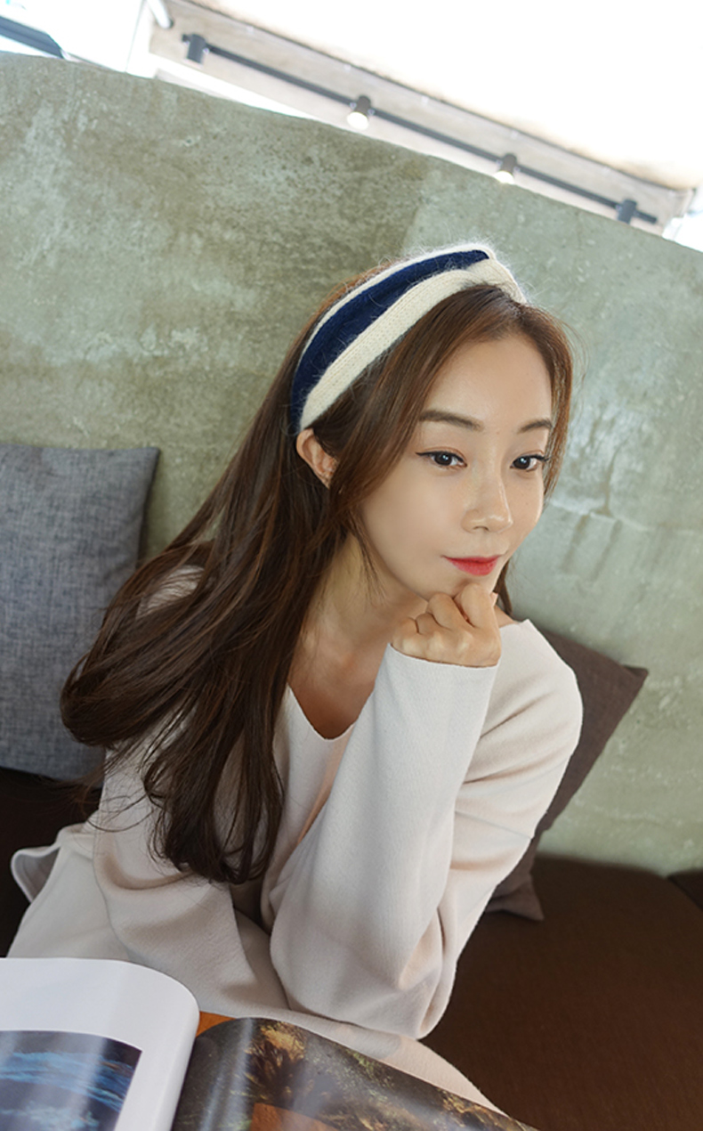 韓國布藝簡約中間打結發帶日韓版淑女氣質頭帶甜美發飾毛線頭飾春1入