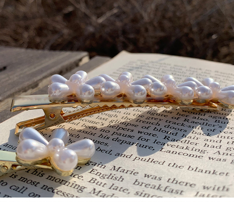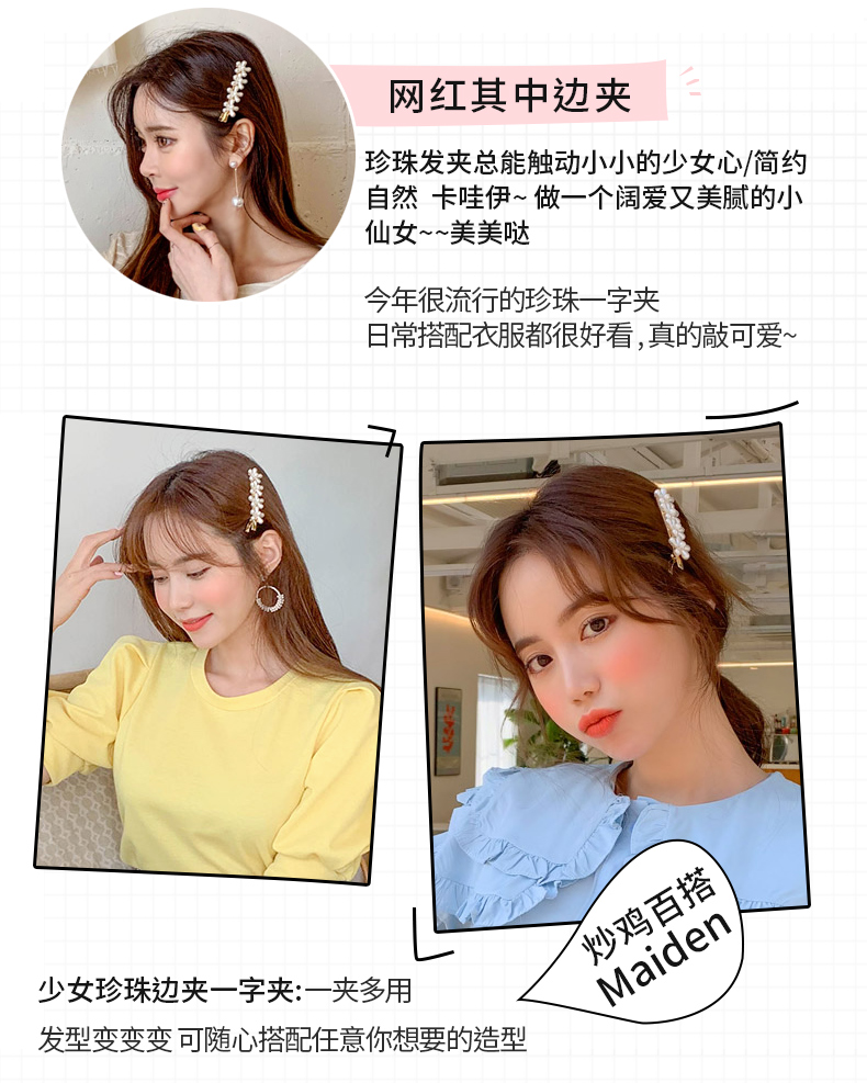 韓國ins仿珍珠發夾女網紅發卡氣質頭飾少女劉海夾子甜美花朵邊夾1入