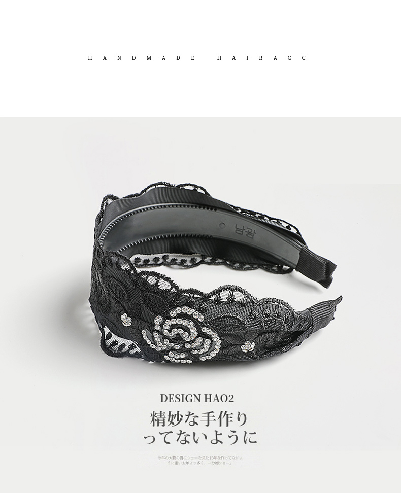 韓式女生2019新款頭飾 花邊鑲鉆寬邊頭箍復古森女百搭ins洗臉發箍1入
