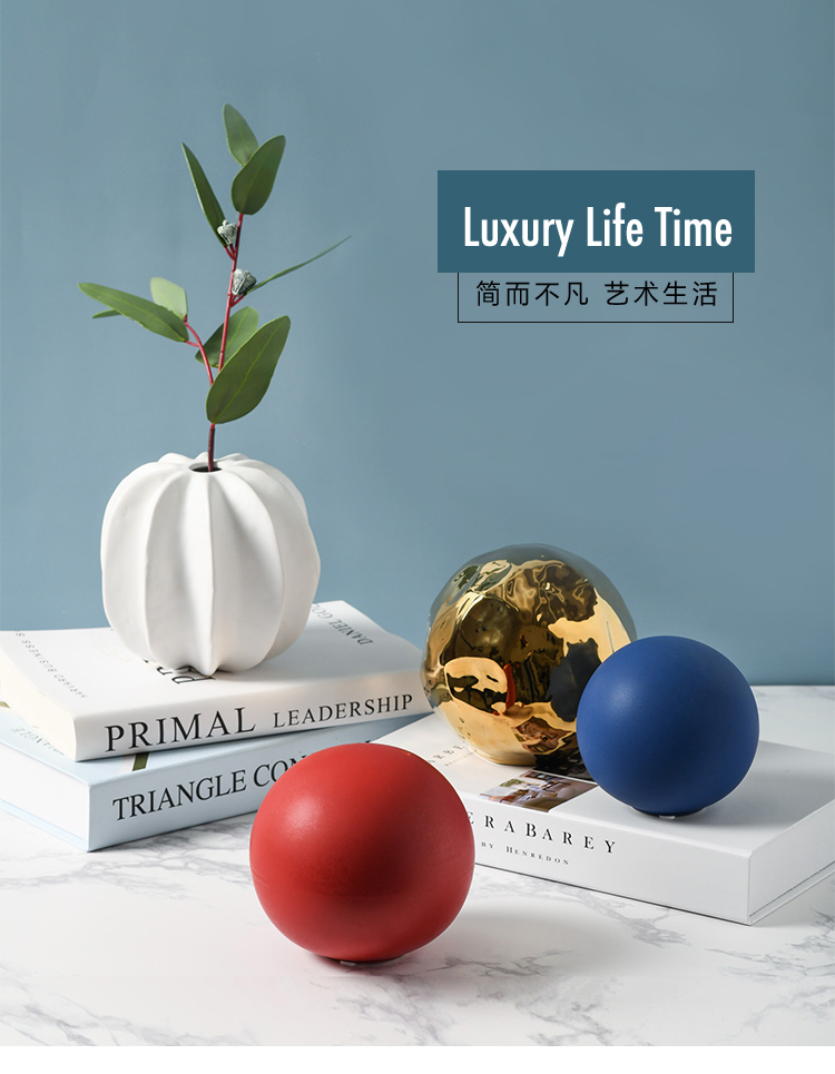 北歐現代簡約輕奢風格擺件創意幾何球體樣板房售樓處軟裝桌面裝飾1入