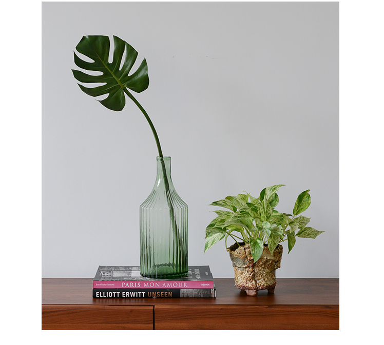 O2簡約幾何線條歐式復古透明彩色玻璃花瓶客廳餐桌擺件水培插花1入