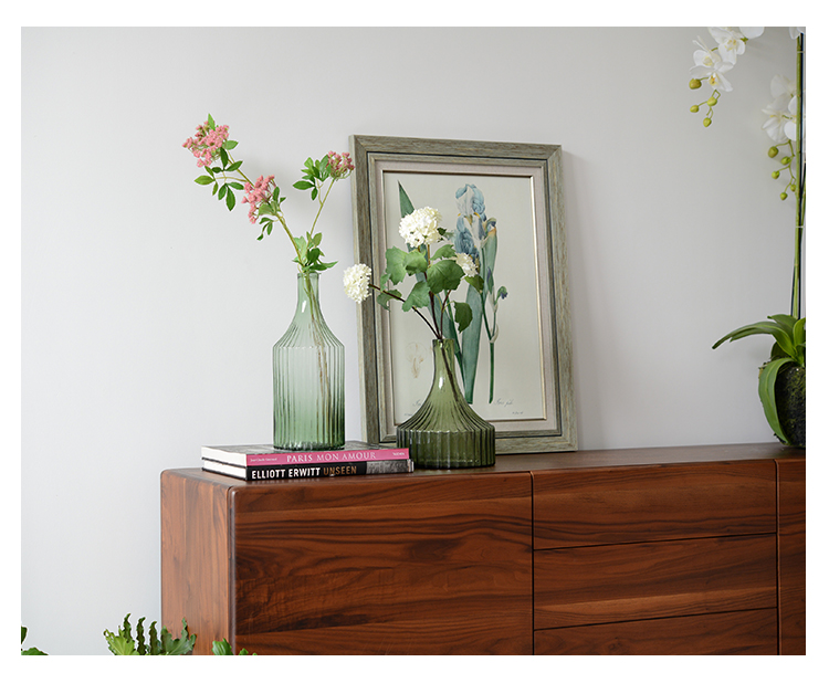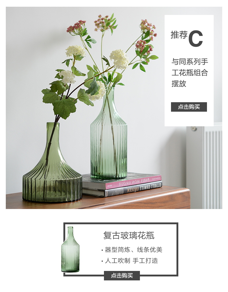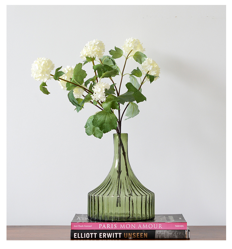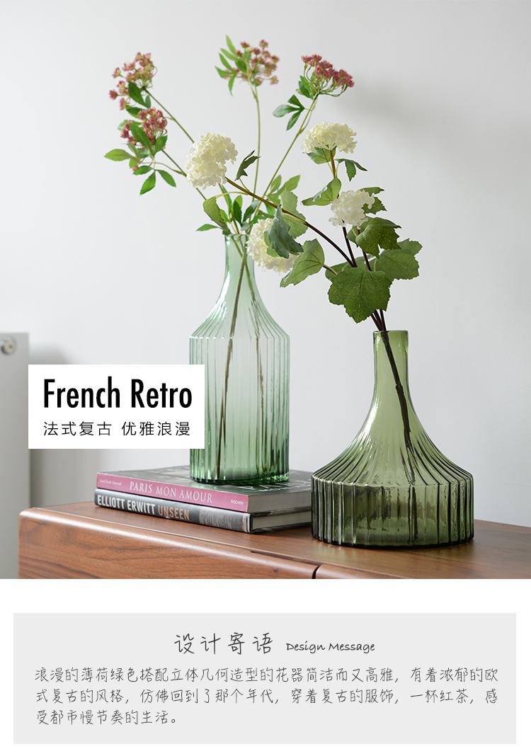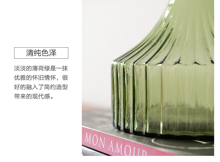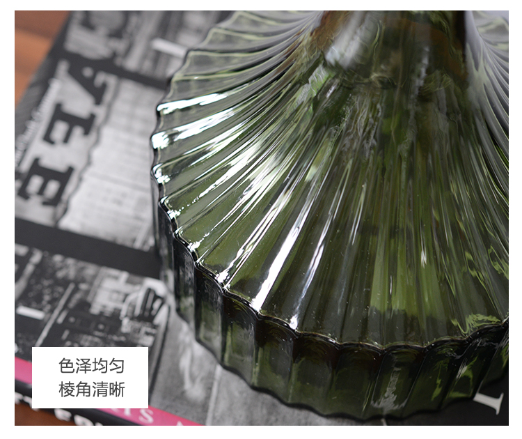 O2 簡約幾何線條歐式透明彩色綠色玻璃花瓶客廳餐桌擺件水培插花1入