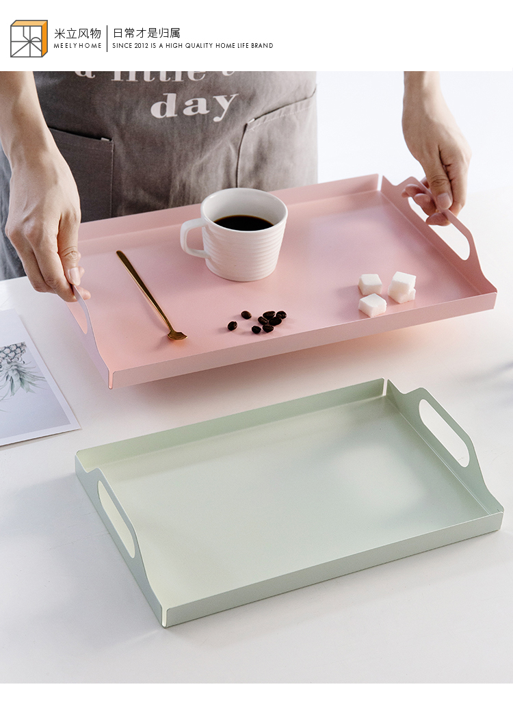 米立風物金屬托盤北歐個性創意家用客廳長方形收納盤ins鐵藝茶盤1入