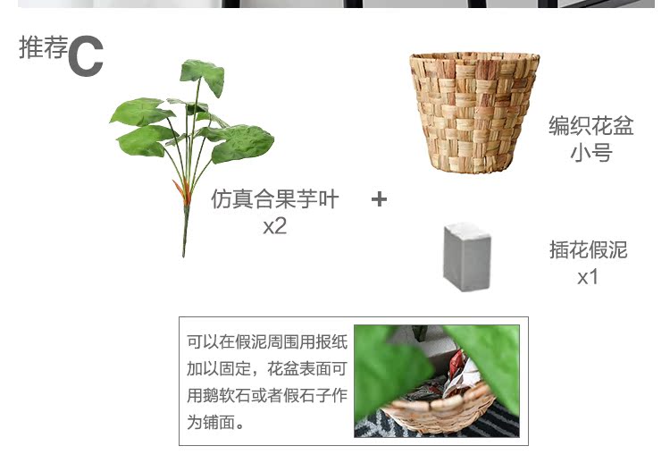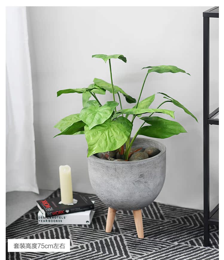 空心星形-綠植(短款)田園仿真植絨綠色植物裝飾盆栽 假花綠植小套裝盆景 仿真盆景擺件