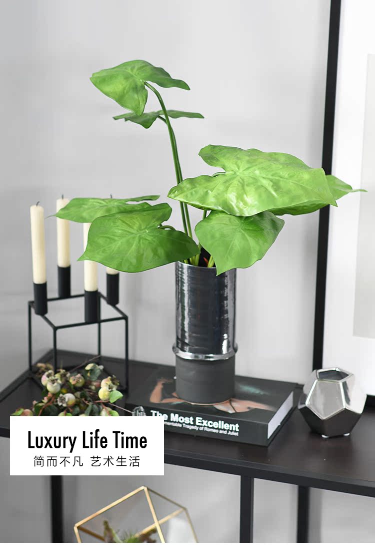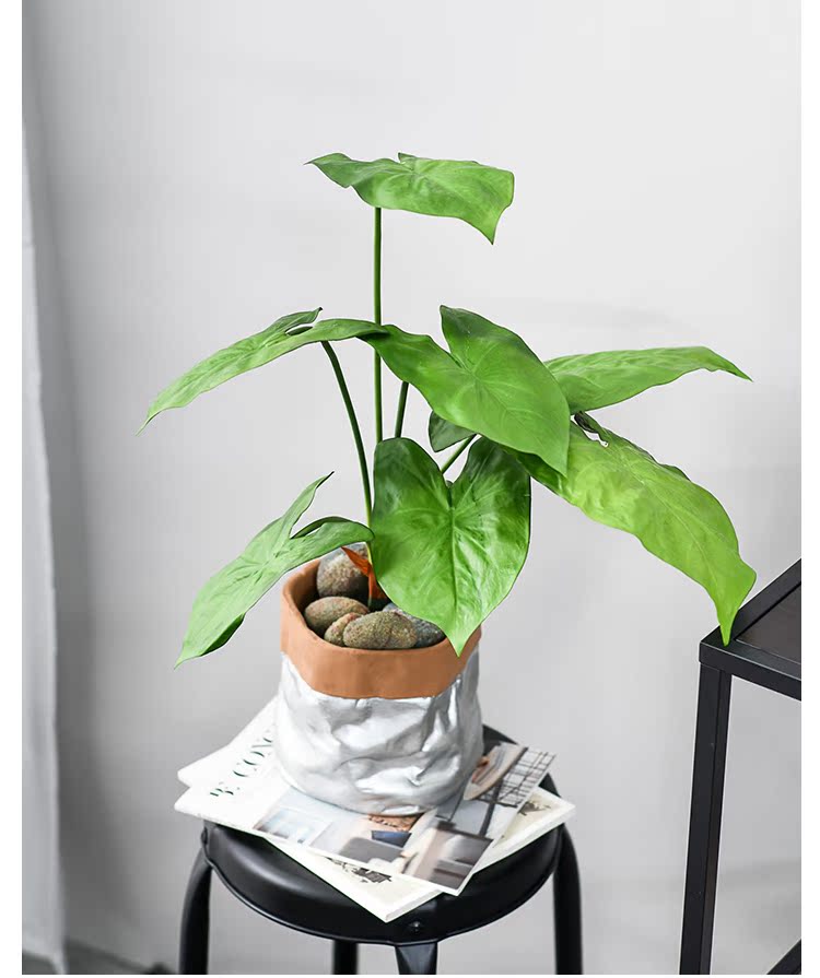 ins北歐 小清新 高仿真綠葉植物 假花束裝飾 客廳擺設盆栽 合果芋1入