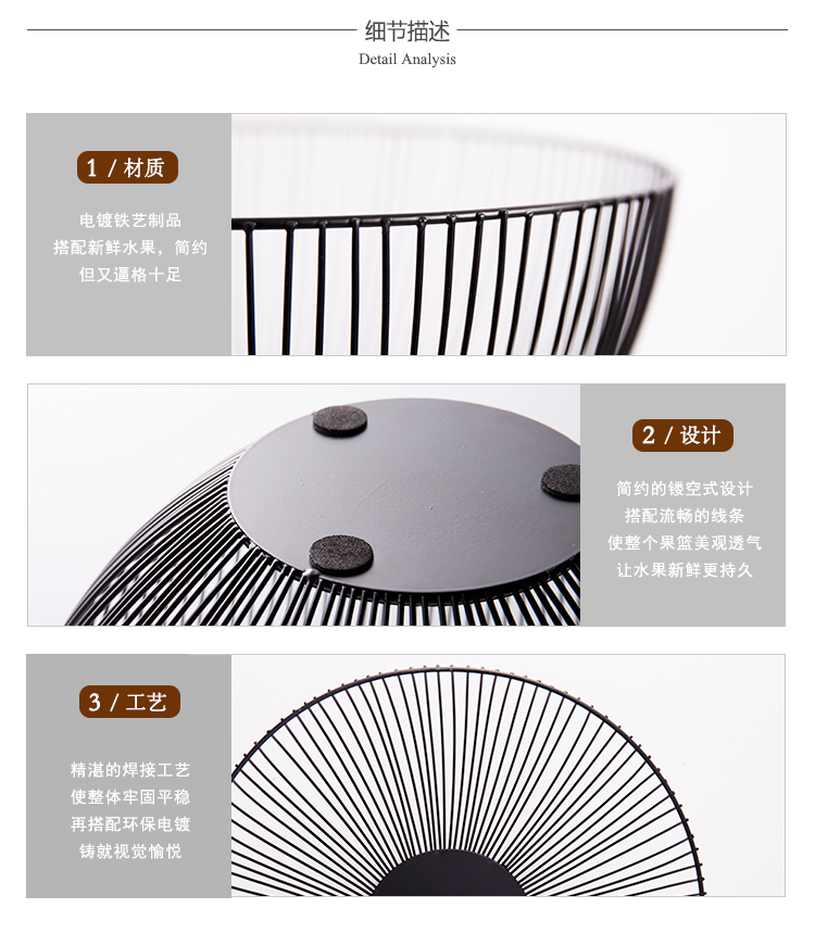 米立風物 ins北歐家居水果零食收納籃創意客廳家用簡約鐵藝水果盤1入
