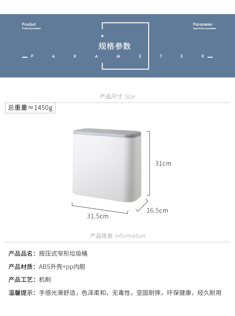 米立風物北歐按壓式分類垃圾桶衛生間家用客廳廚房大號帶蓋紙簍桶1入