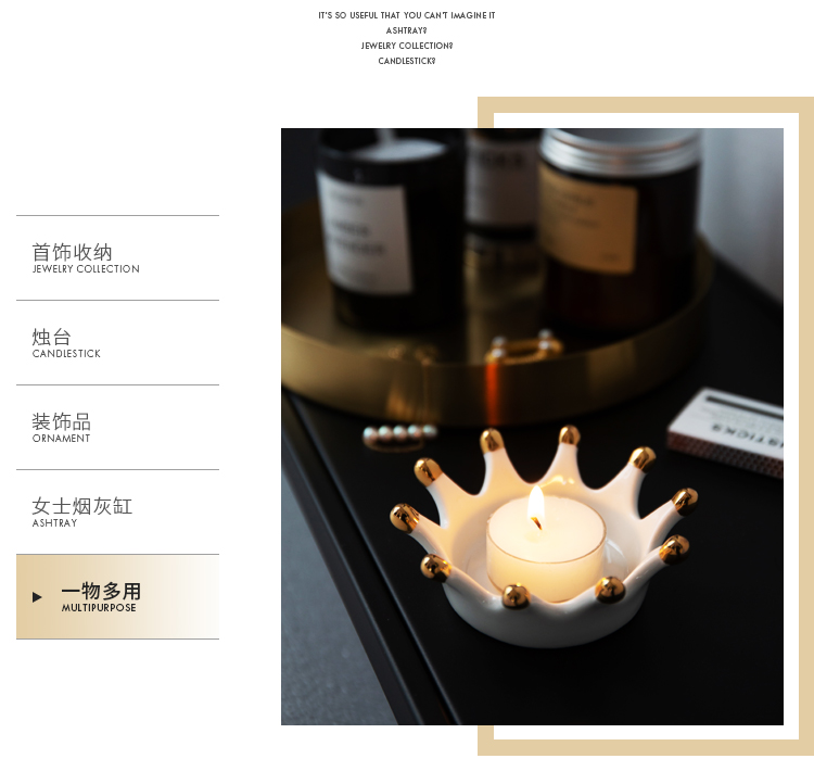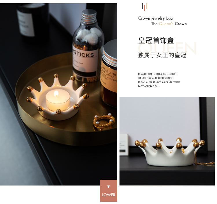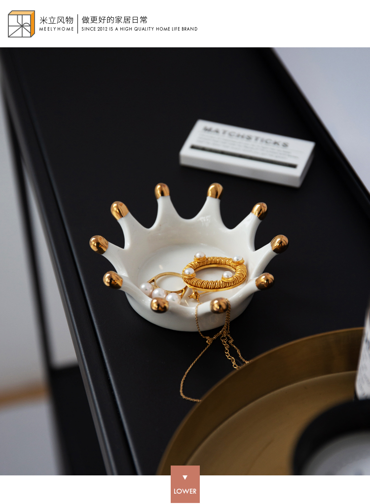 米立風物陶瓷皇冠首飾盒ins風項鏈戒指收納桌面煙灰缸蠟燭臺擺件1入