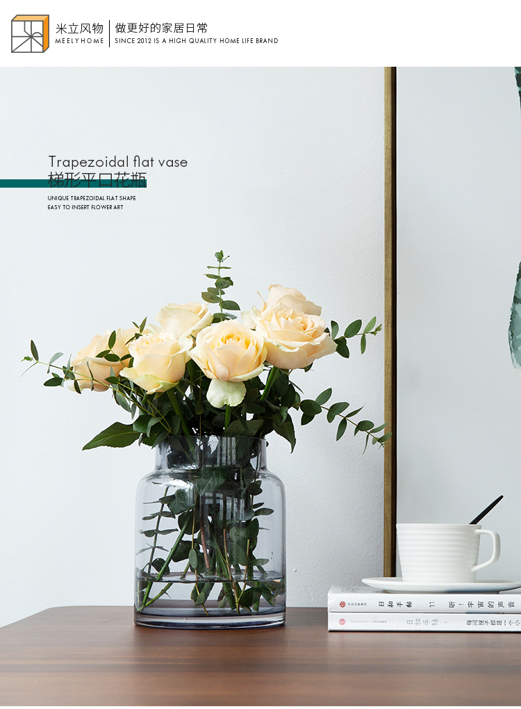 米立風物ins北歐透明玻璃花瓶擺件裝飾簡約客廳插花鮮花水培花瓶1入