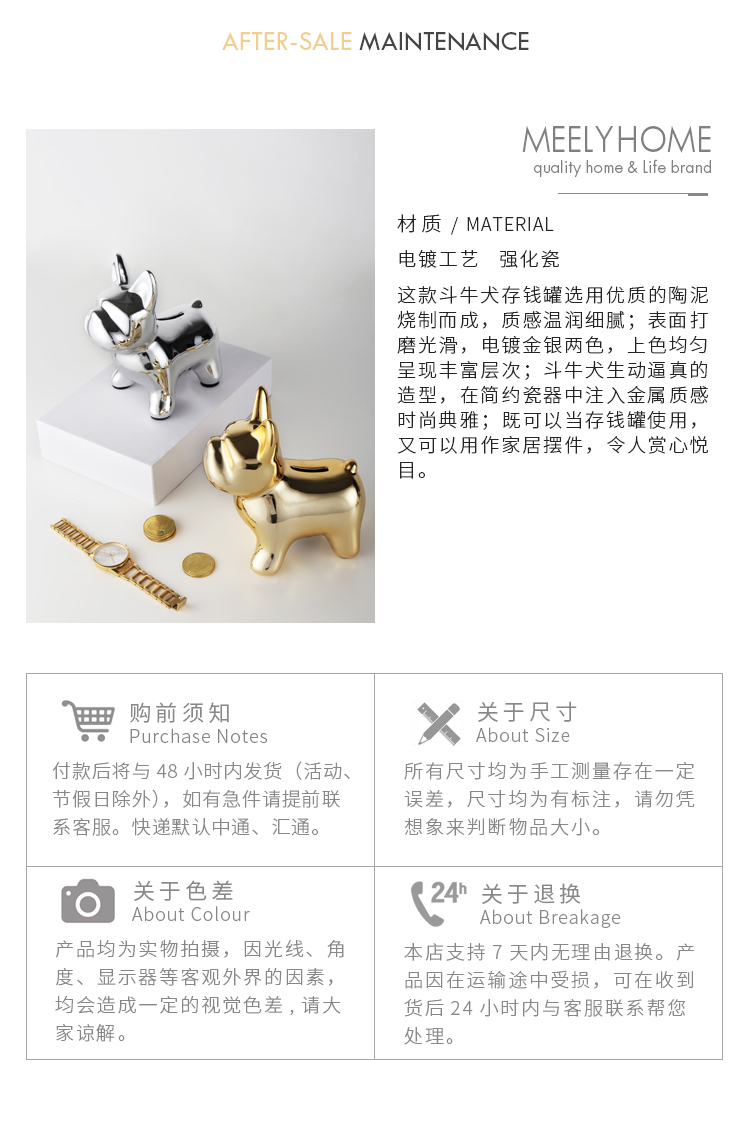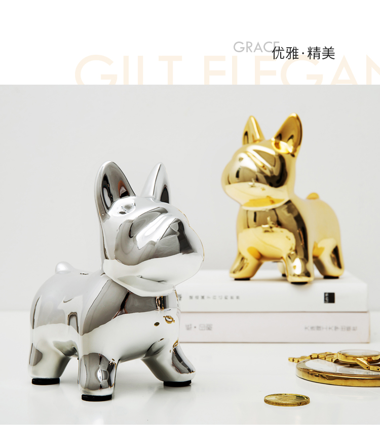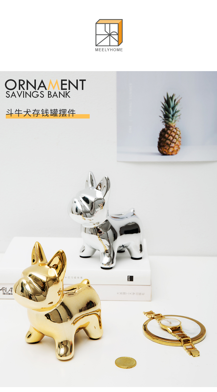 米立風物 ins創意個性儲存罐陶瓷斗牛犬硬幣存錢罐家居飾品擺件1入