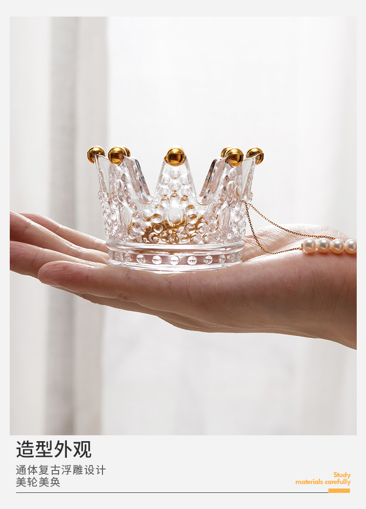 米立風物ins皇冠玻璃燭臺擺件北歐浪漫家用香薰蠟燭杯戒指收納盒1入
