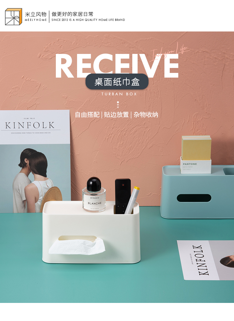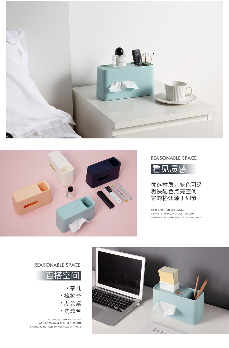 米立風物多功能紙巾盒衛生間客廳茶幾桌面遙控器收納盒簡約家用1入