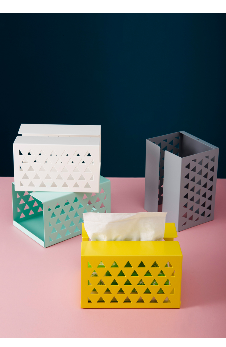 米立風物創意鐵藝紙巾收納盒北歐簡約鏤空抽紙盒客廳茶幾餐巾紙盒1入