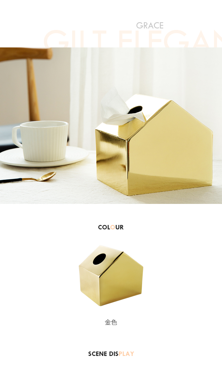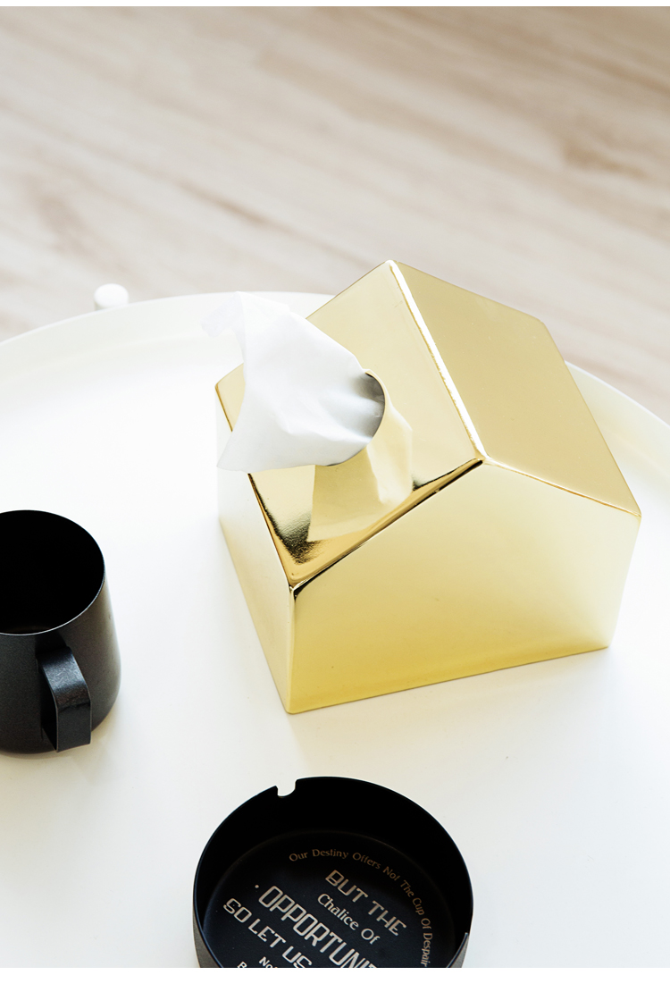 米立風物ins北歐創意紙巾盒裝飾擺件金屬小房子紙巾盒s號餐巾紙盒1入