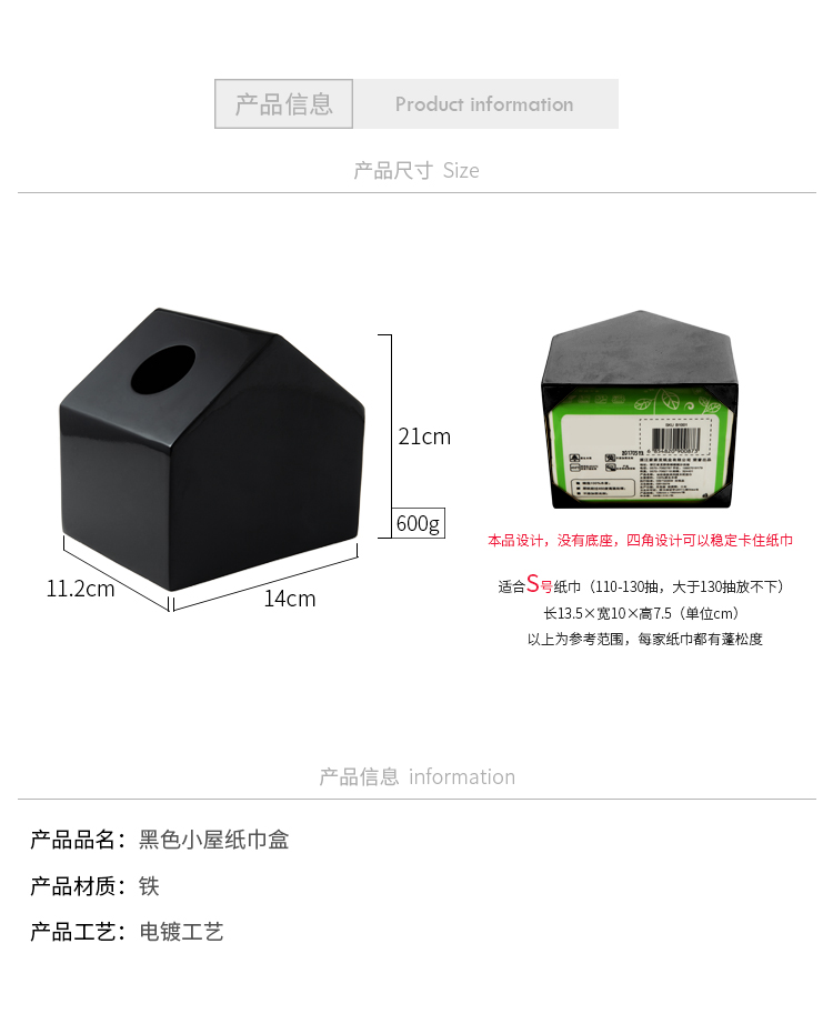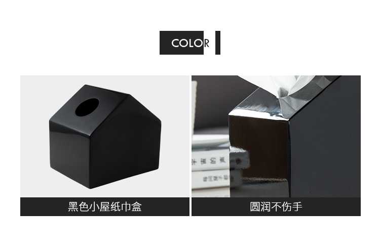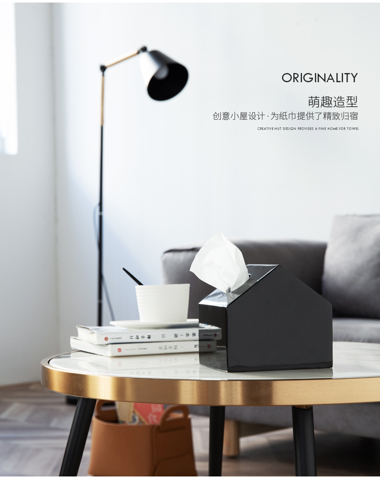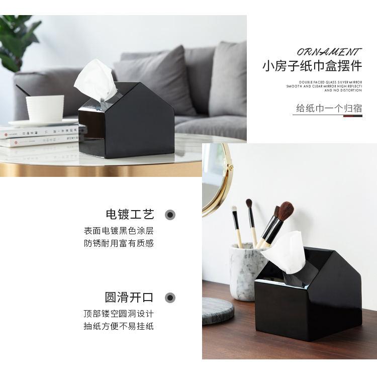 米立風物北歐黑色金屬小房子紙巾盒家用客廳裝飾小紙巾盒餐巾紙盒1入