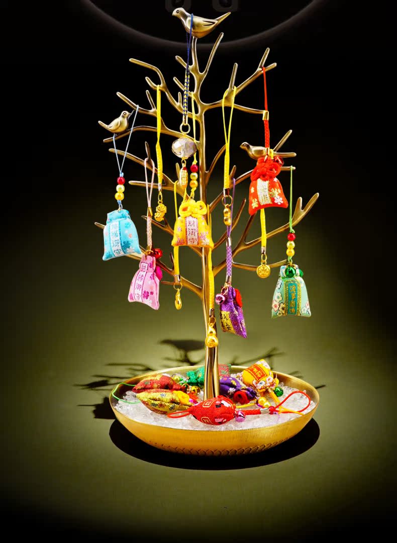 慈風閣2019招財樹銅祈愿發財樹水晶福袋姻緣事業家居客廳禮品1入