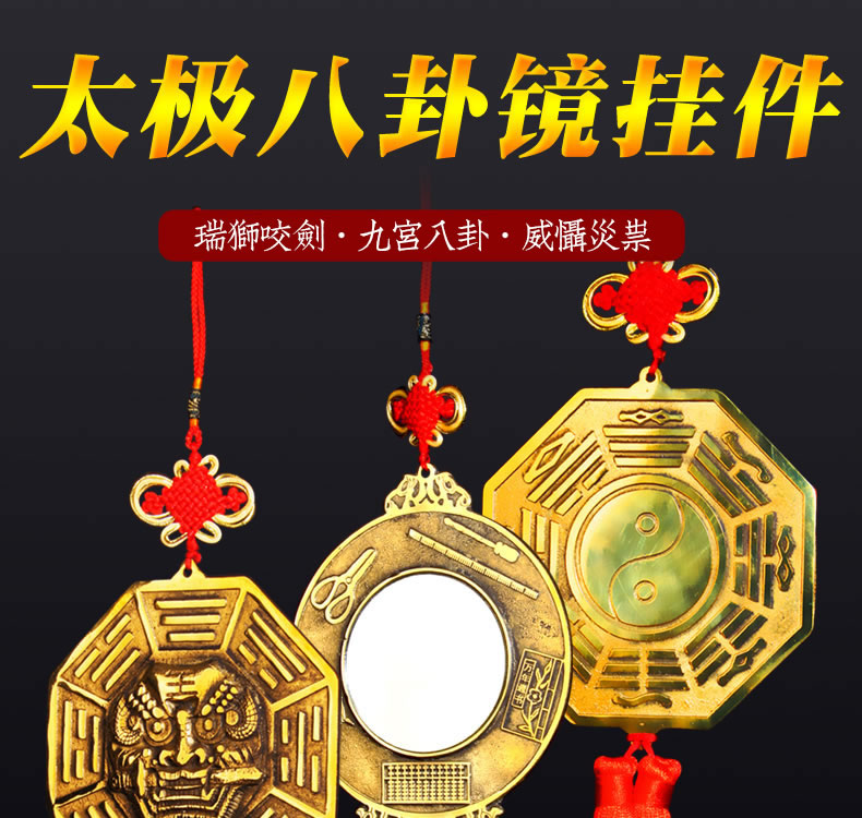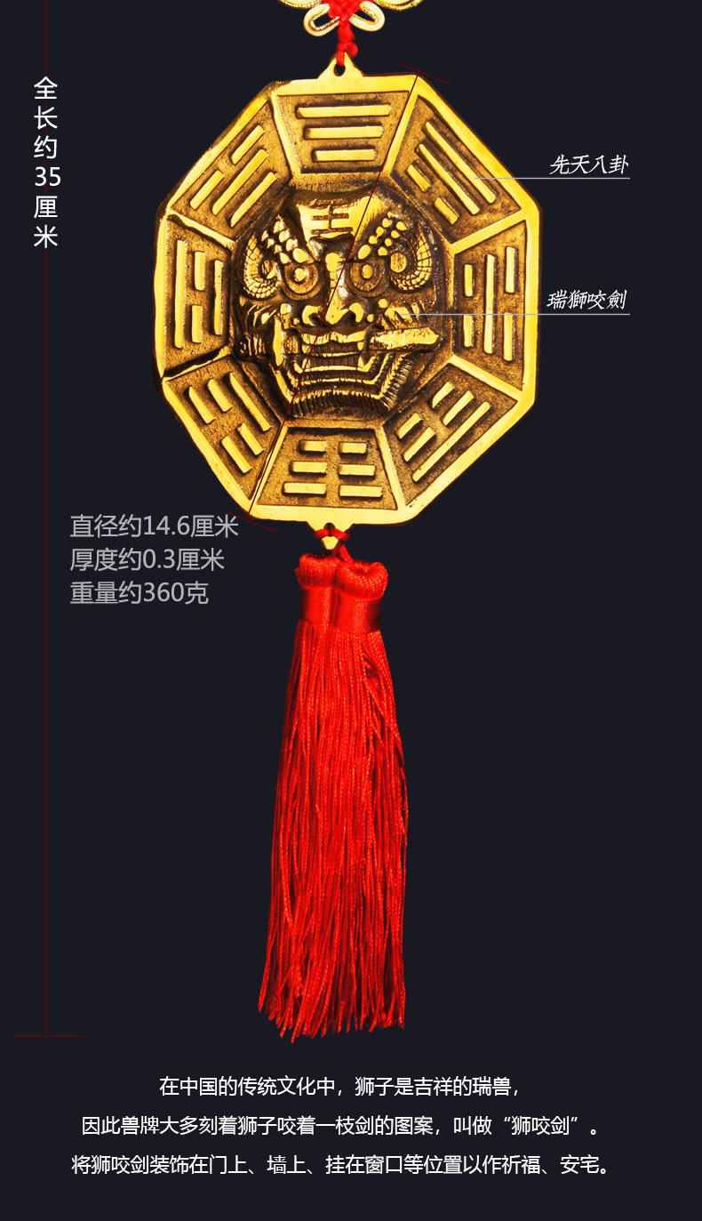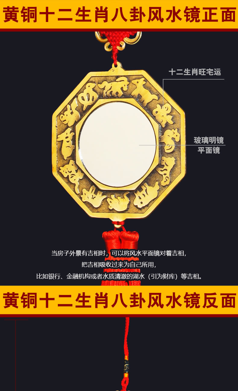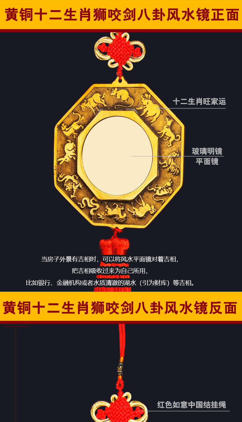 黃銅太極八卦鏡掛件九宮太極十二生肖五行獅咬劍虎頭睚眥風水鏡子1入