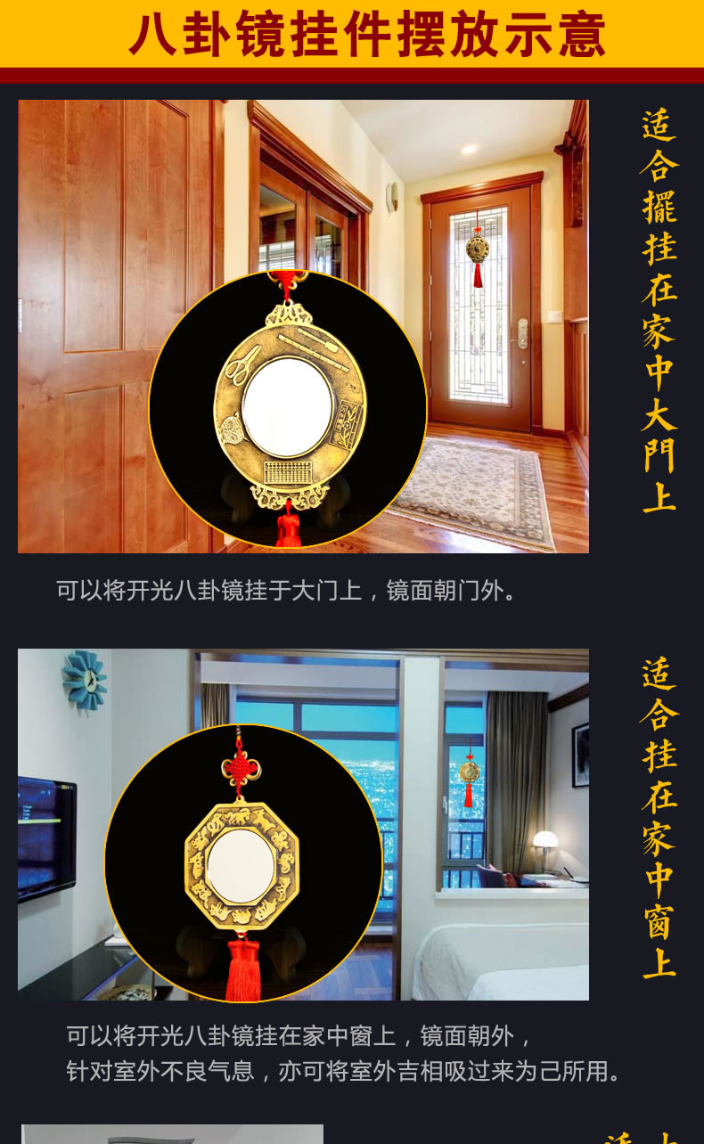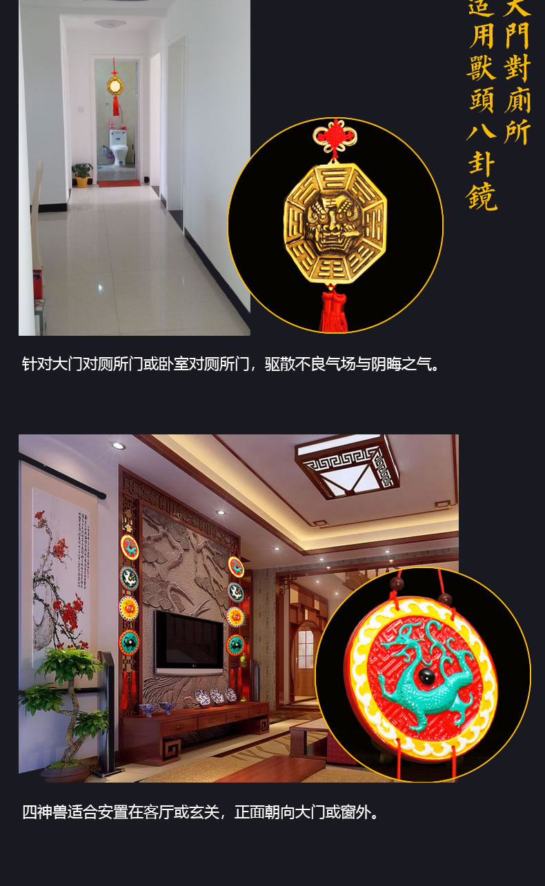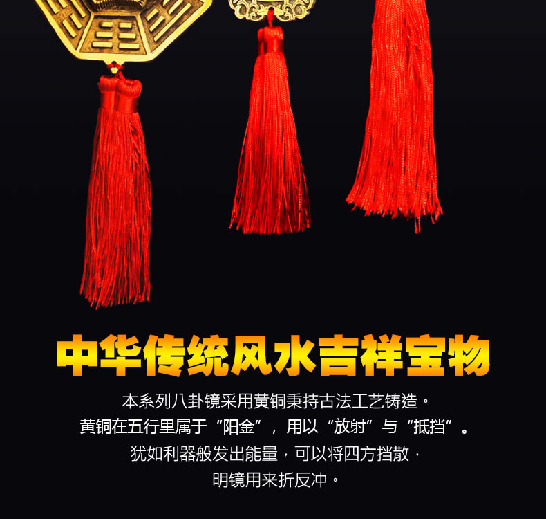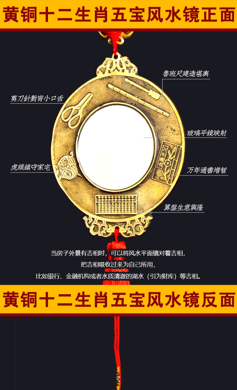 黃銅太極八卦鏡掛件九宮太極十二生肖五行獅咬劍虎頭睚眥風水鏡子1入