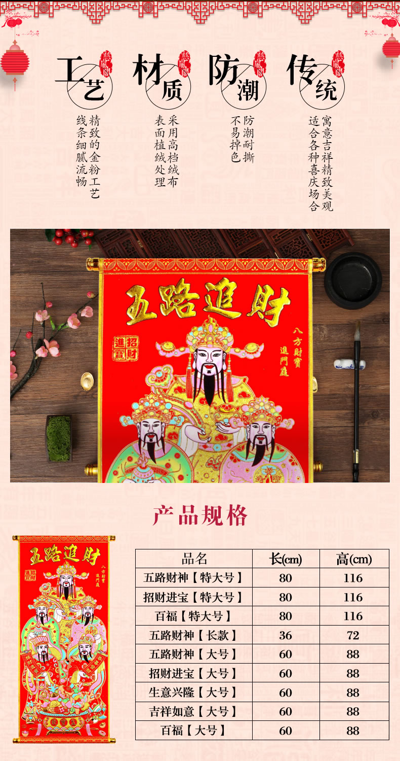 慈風閣風水財神到中堂畫客廳卷軸掛畫農村堂屋壁掛新年喬遷掛聯1入
