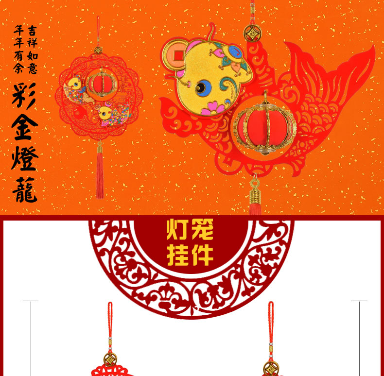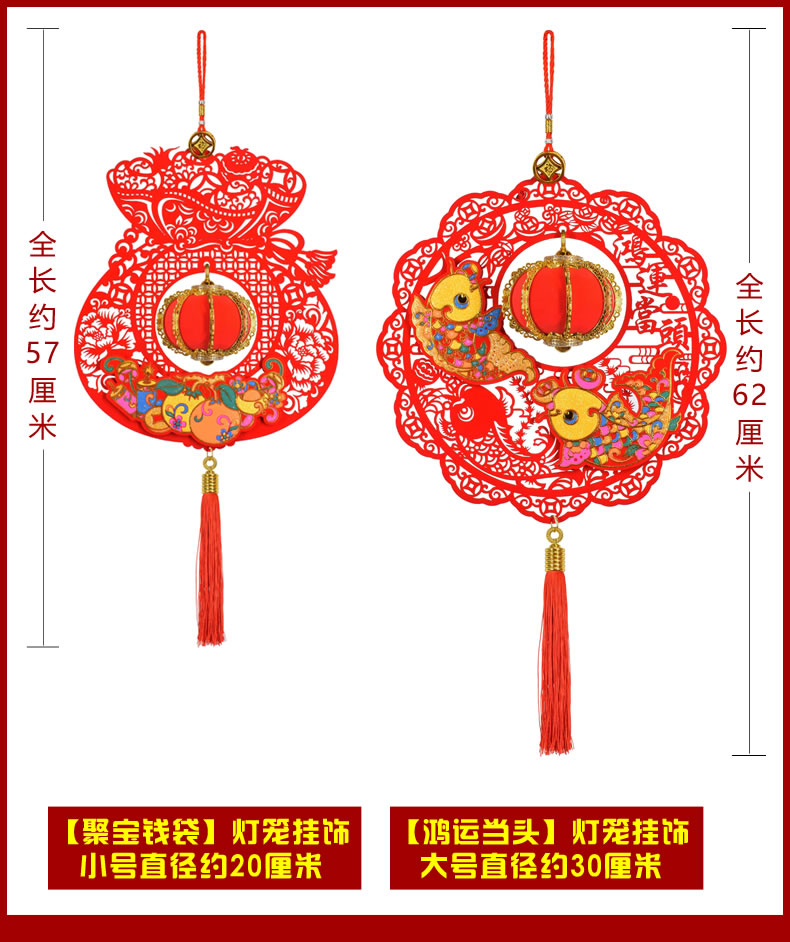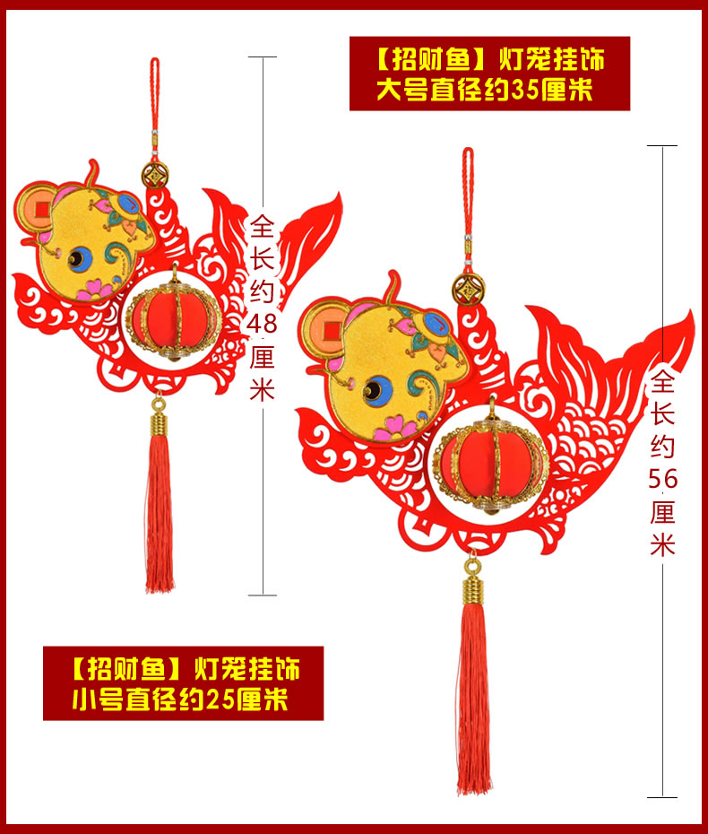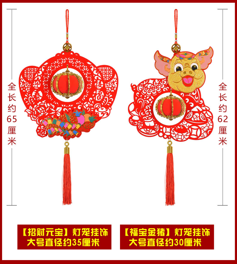 風水2019豬年中國結掛件財神年年有余春節過年新年燈籠裝飾品禮包1入