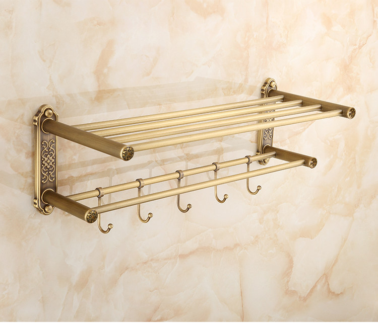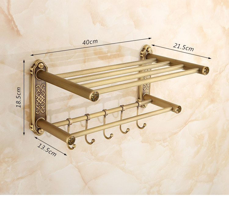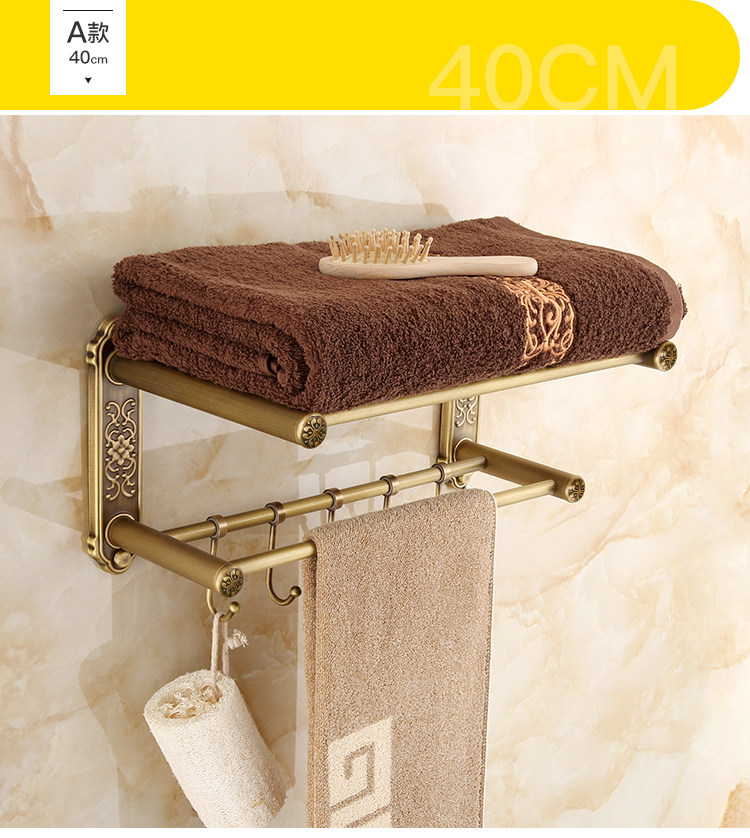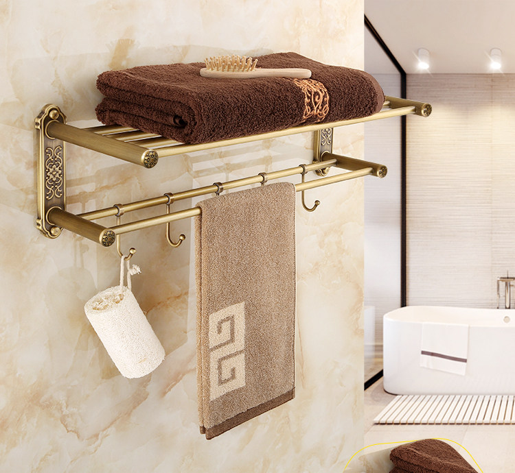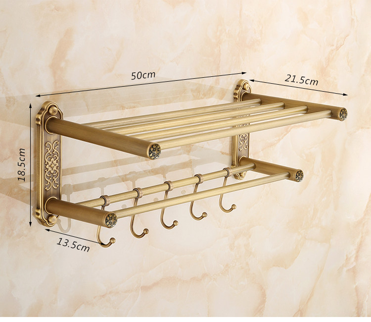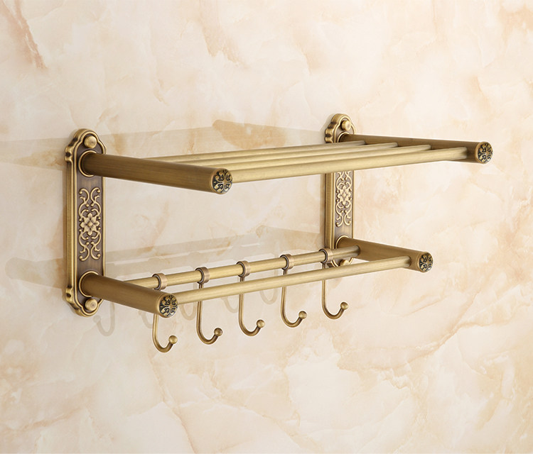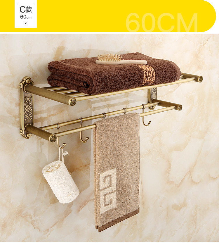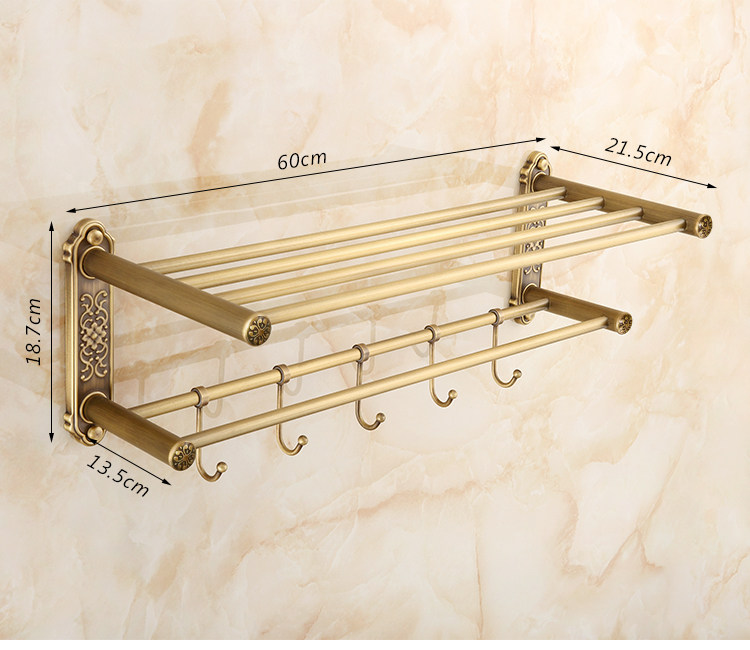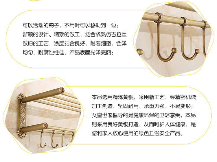 仿古復古浴巾架桿帶移動掛鉤歐式衛生間毛巾架置物架浴室收納掛架1入