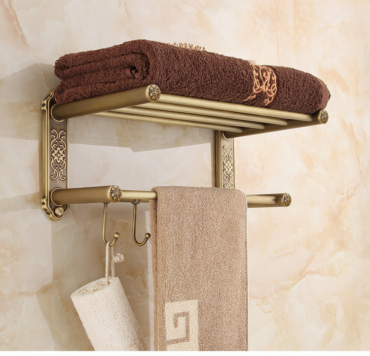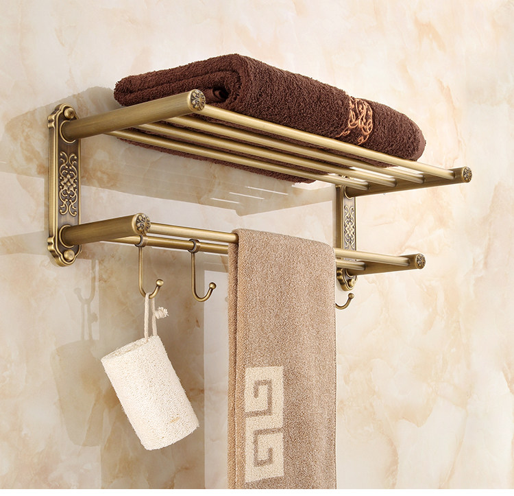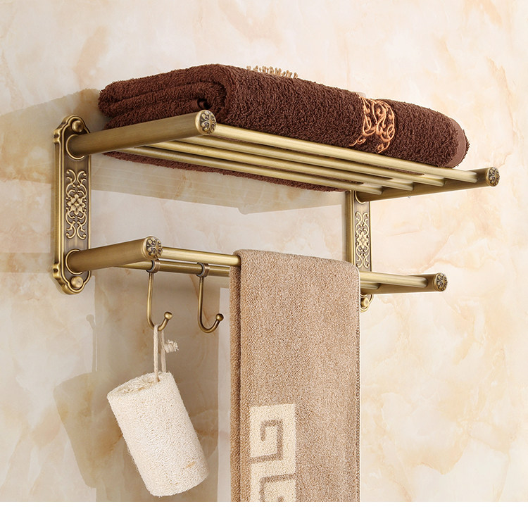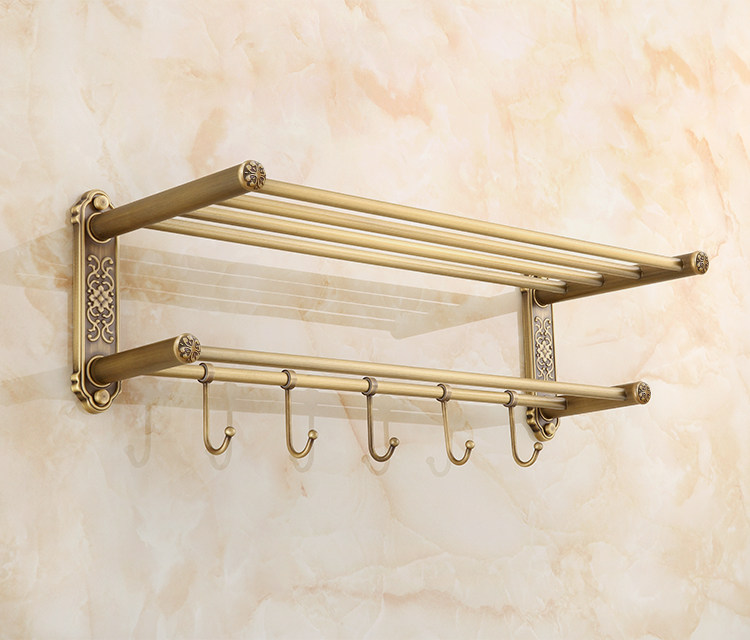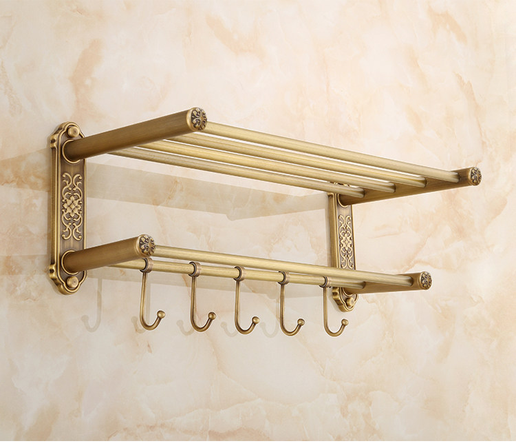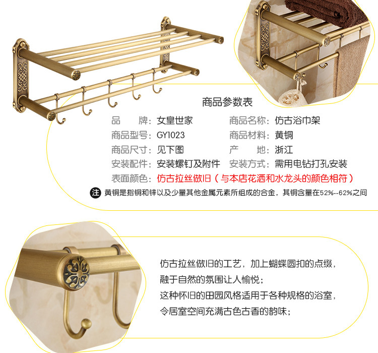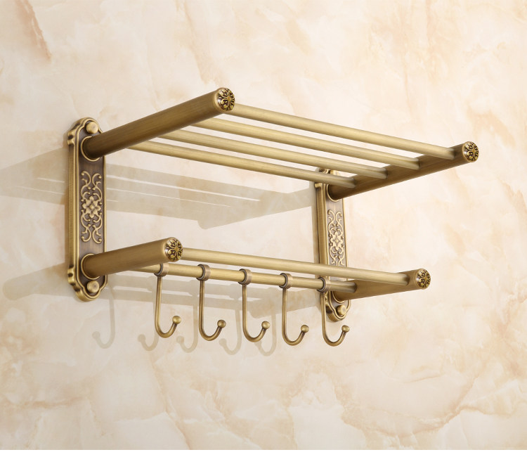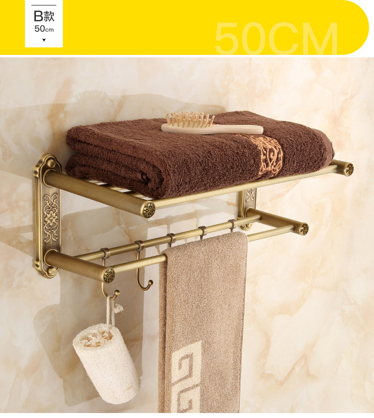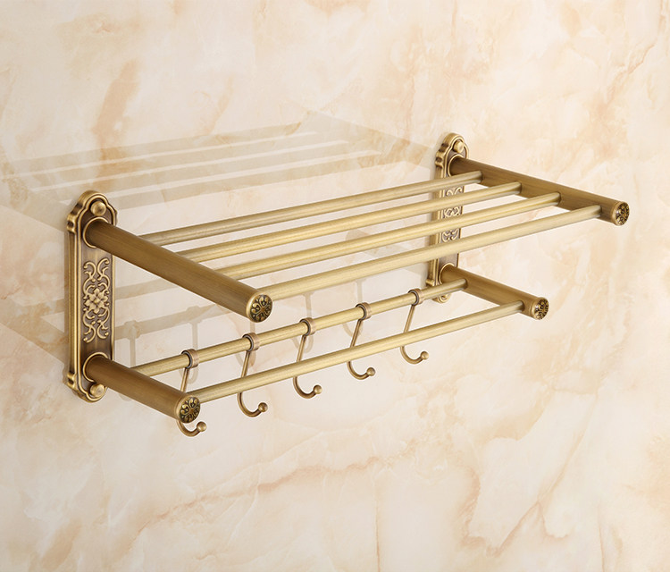 仿古復古浴巾架桿帶移動掛鉤歐式衛生間毛巾架置物架浴室收納掛架1入