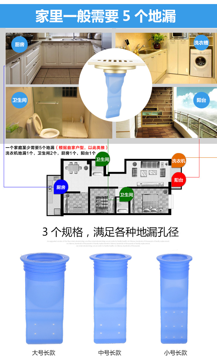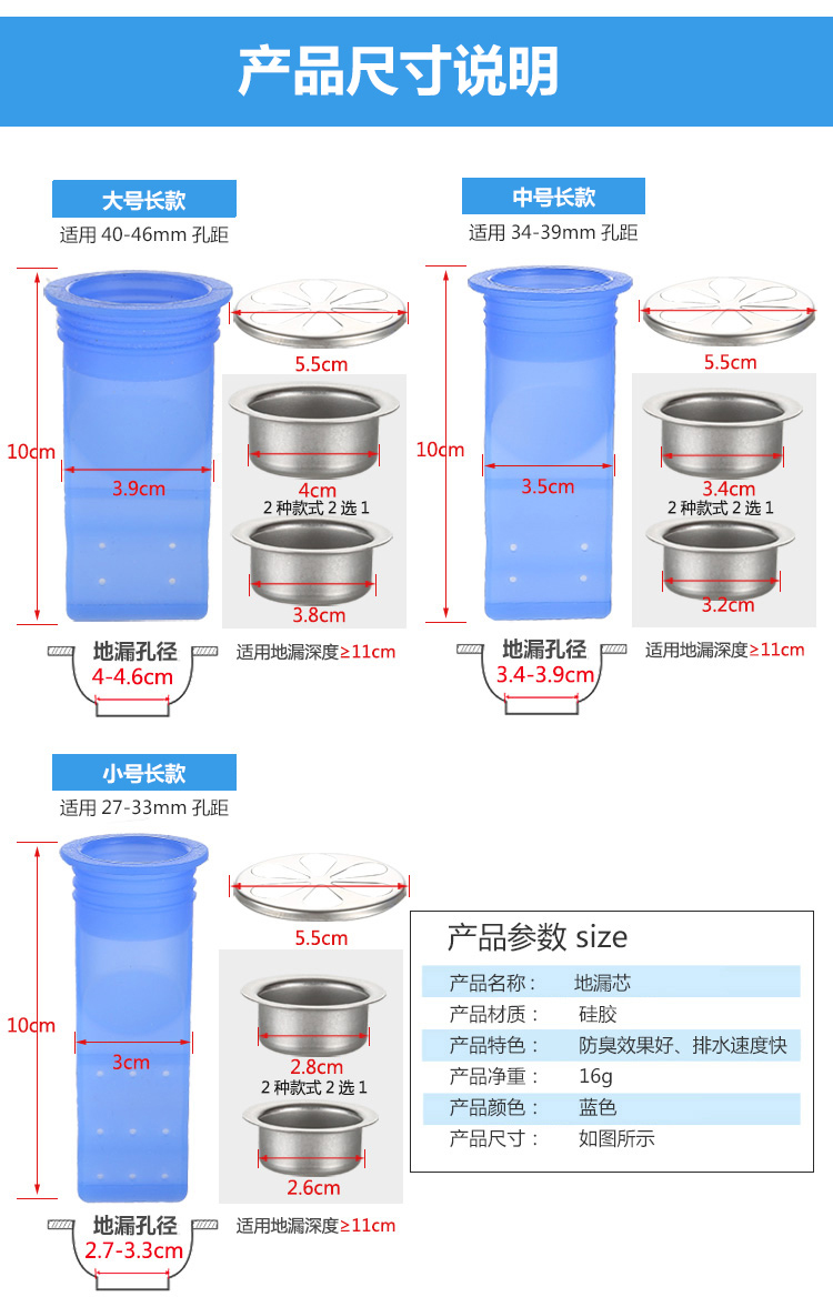 防臭硅膠芯衛生間陽臺廚房洗衣機下水管道防蟲不銹鋼地漏蓋片內芯1入