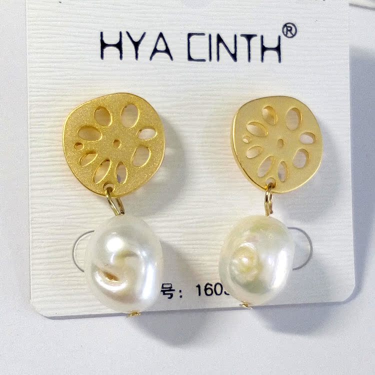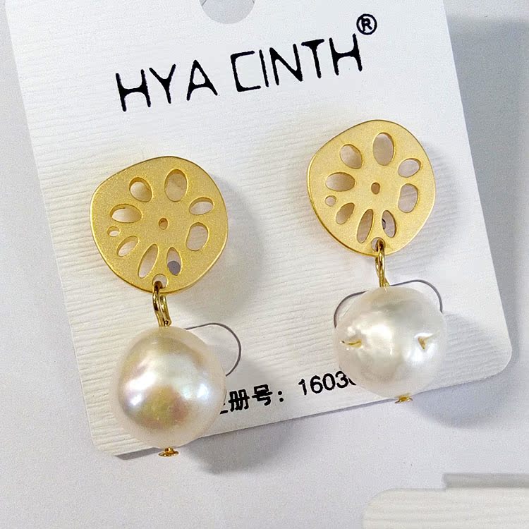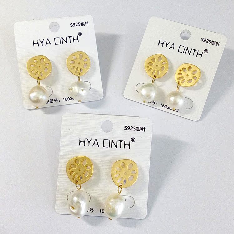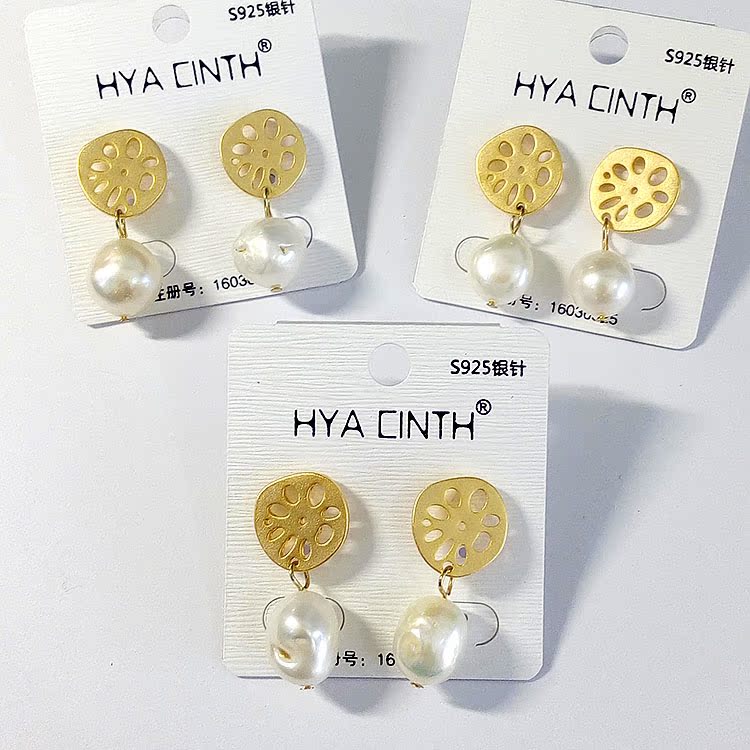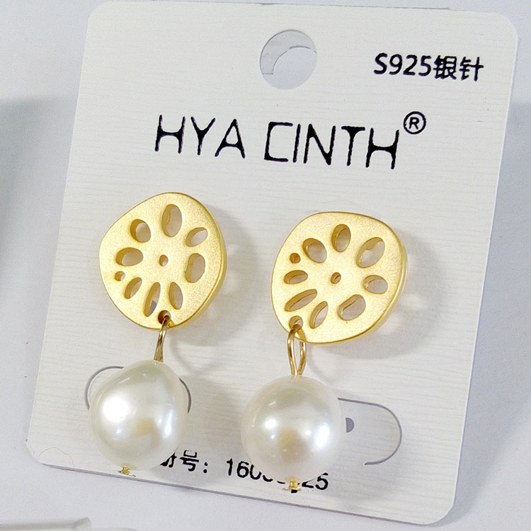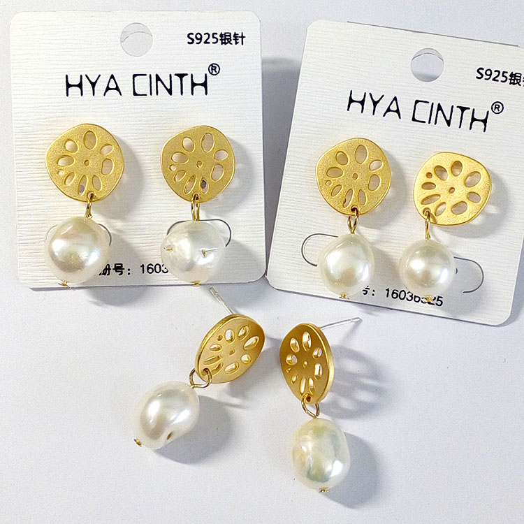 韓式s925銀針天然珍珠銅制啞光金女式耳釘氣質時尚耳環飾品1入
