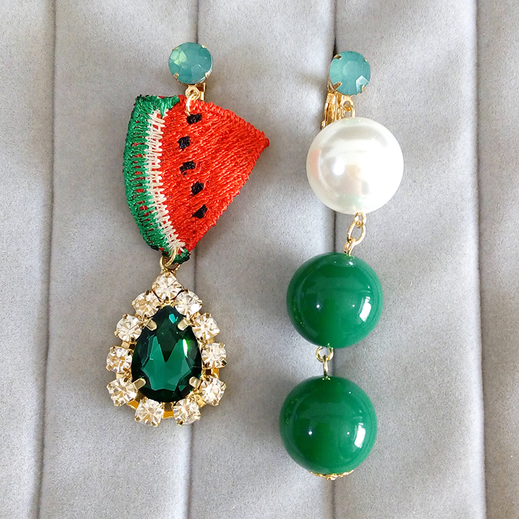 鑲鉆大寶石編織西瓜長款仿珍珠女式無耳洞螺絲耳夾1入