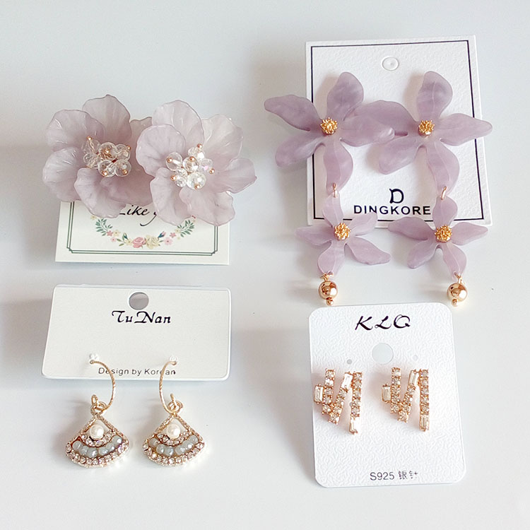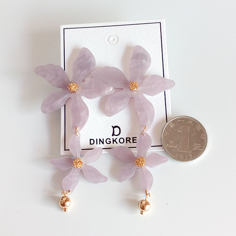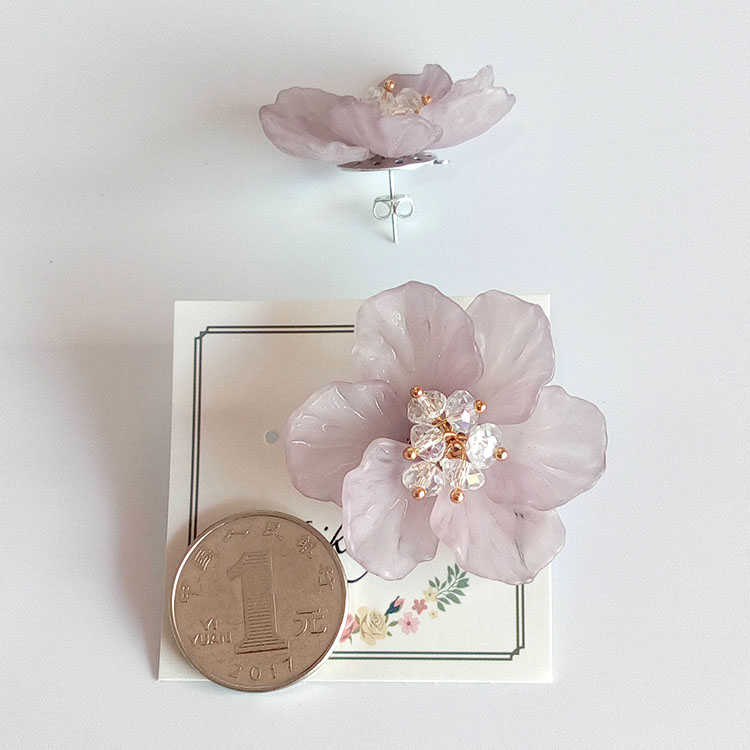 超大夸張韓版銀針冷淡風格淡紫色花朵女式耳釘耳環1入