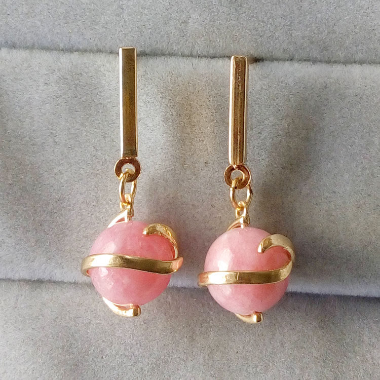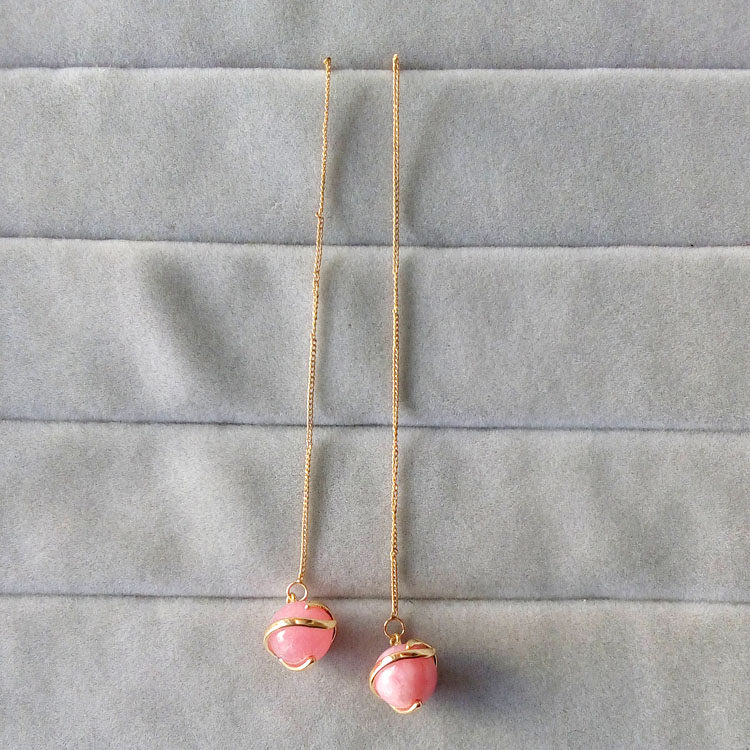 新款天然粉晶石淑女耳釘長款耳線小紅草莓耳環1入
