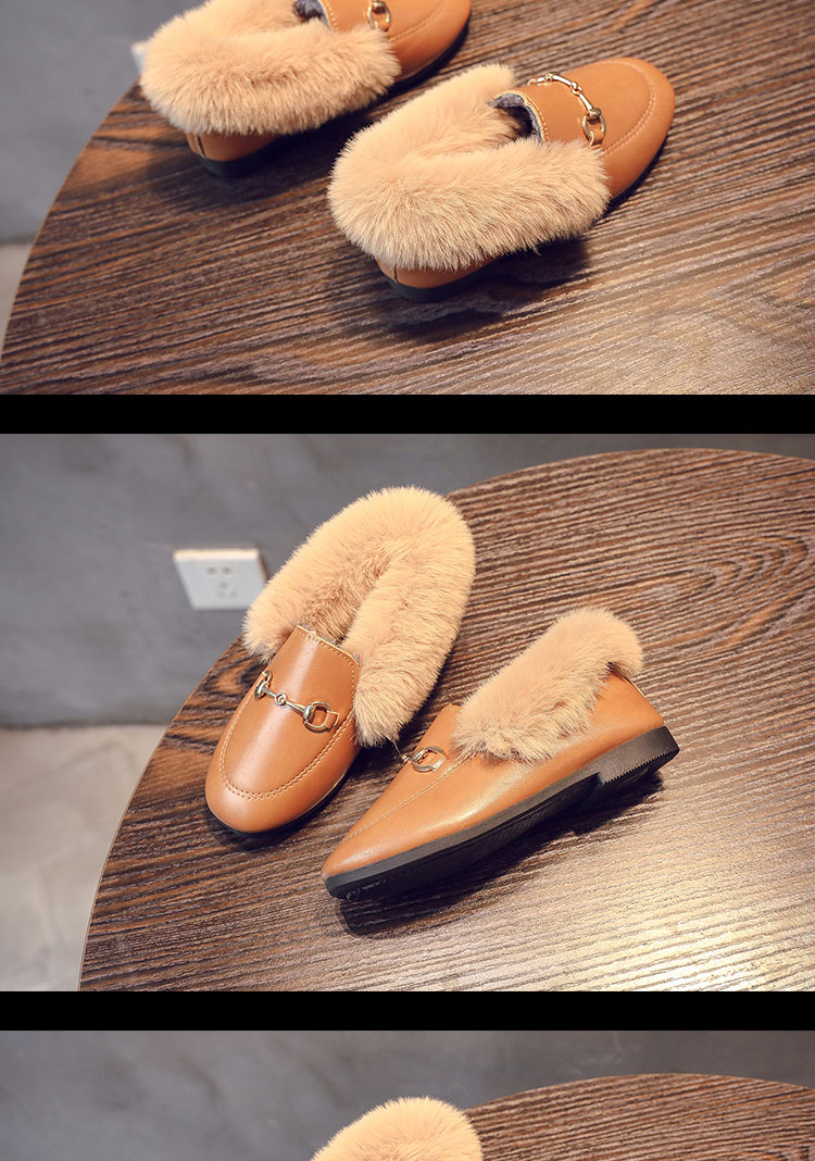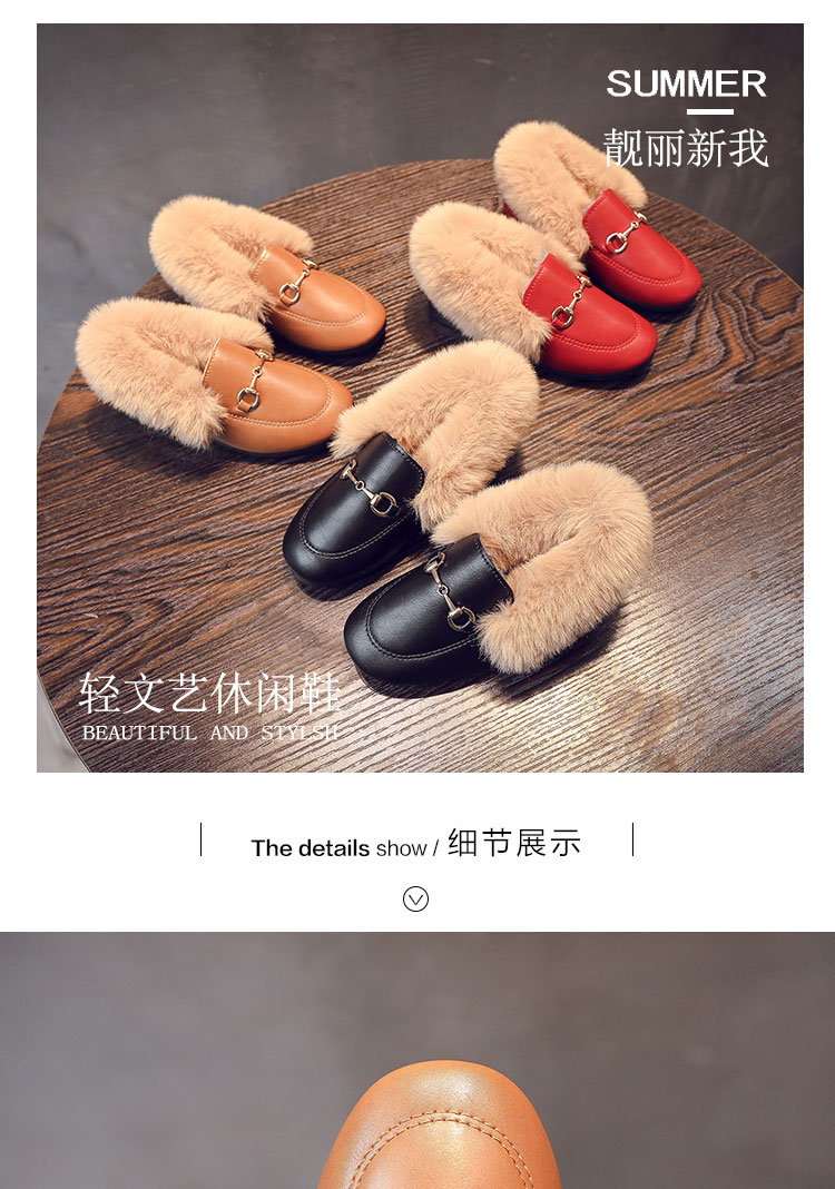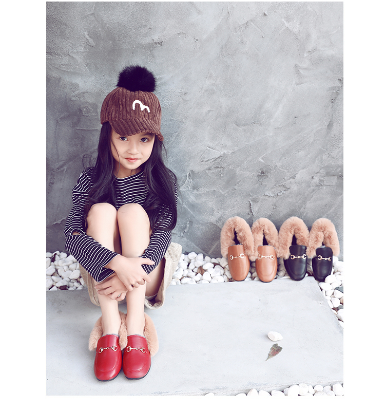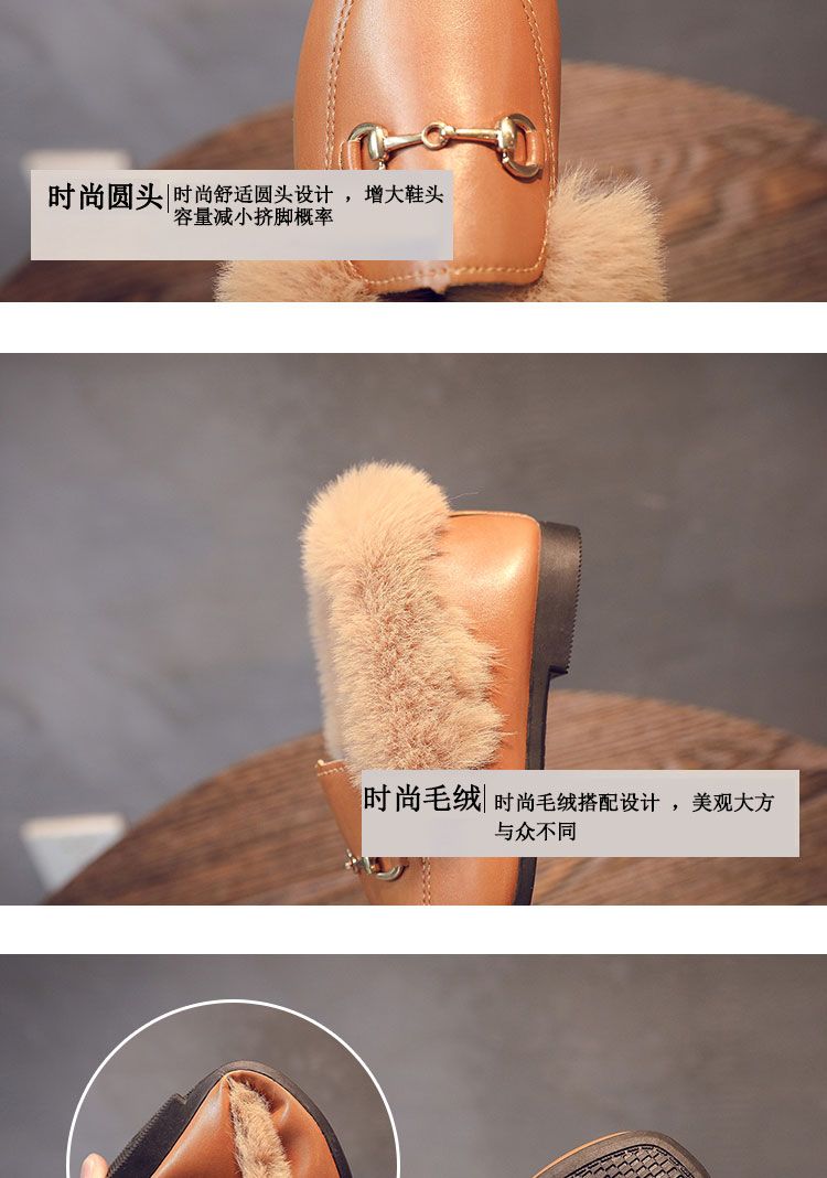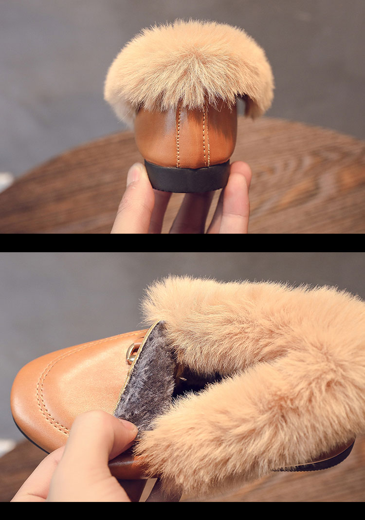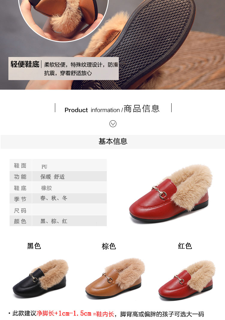 2019秋冬新款韓版加絨女童皮鞋公主兒童豆豆鞋男童鞋保暖短靴棉鞋1入