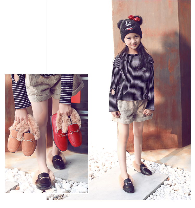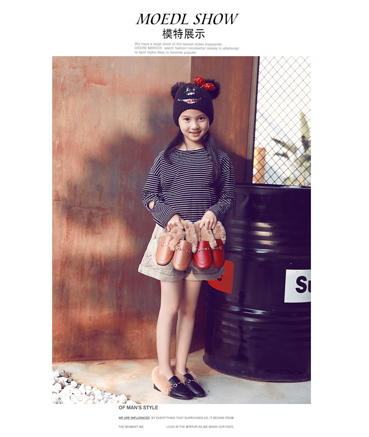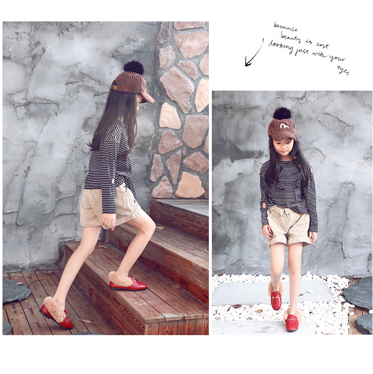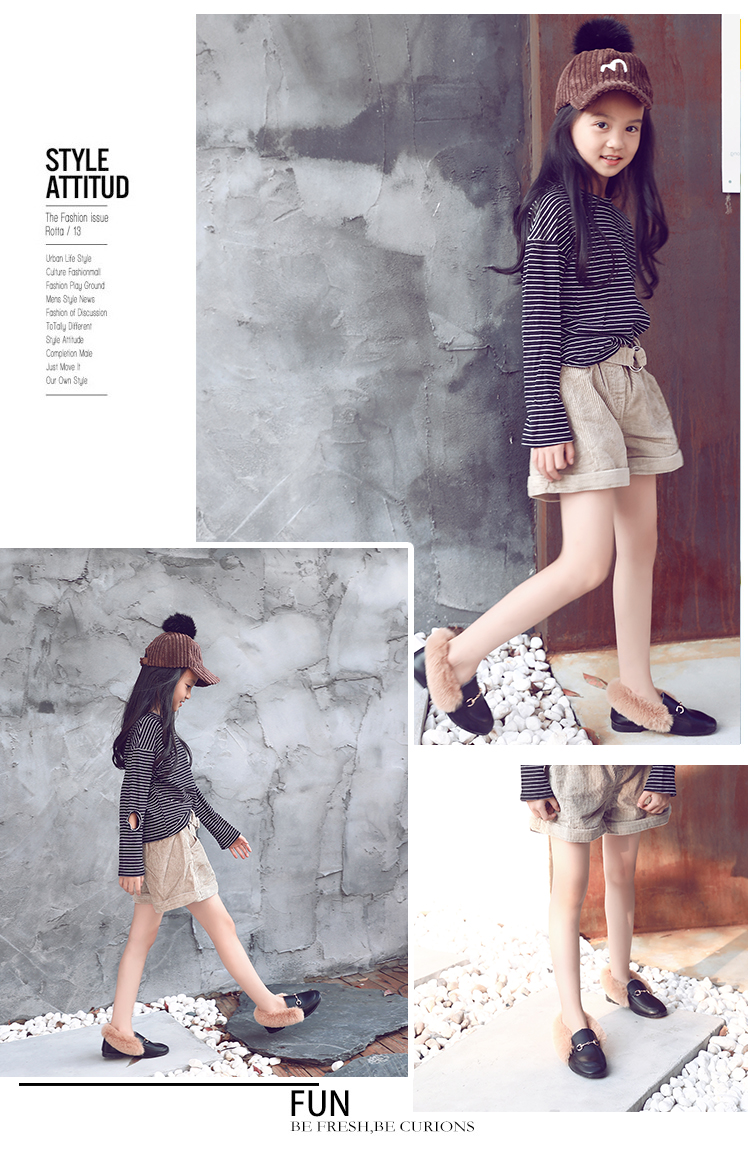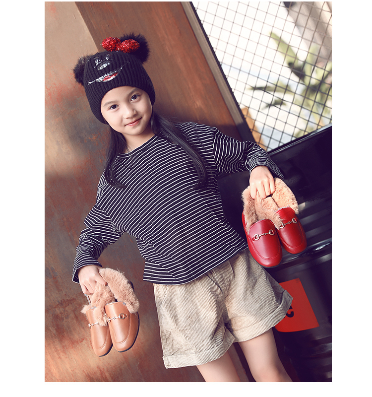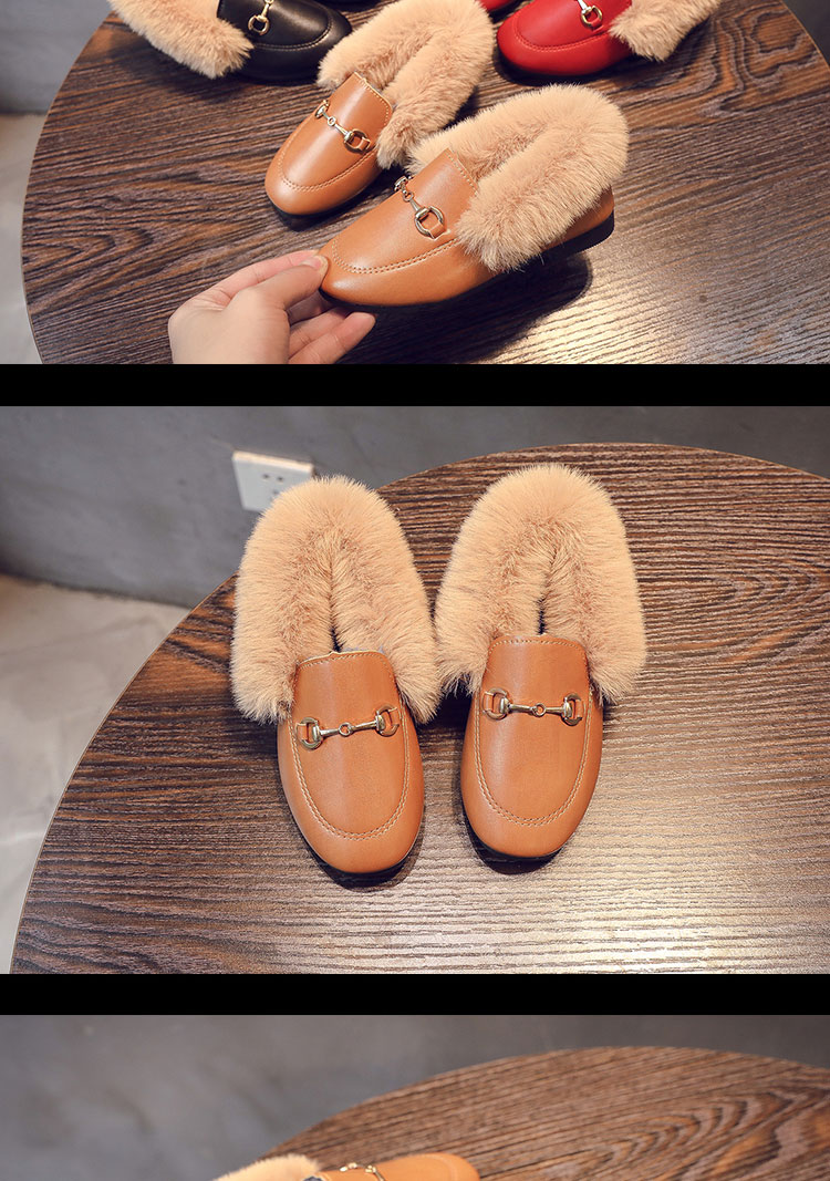 2019秋冬新款韓版加絨女童皮鞋公主兒童豆豆鞋男童鞋保暖短靴棉鞋1入