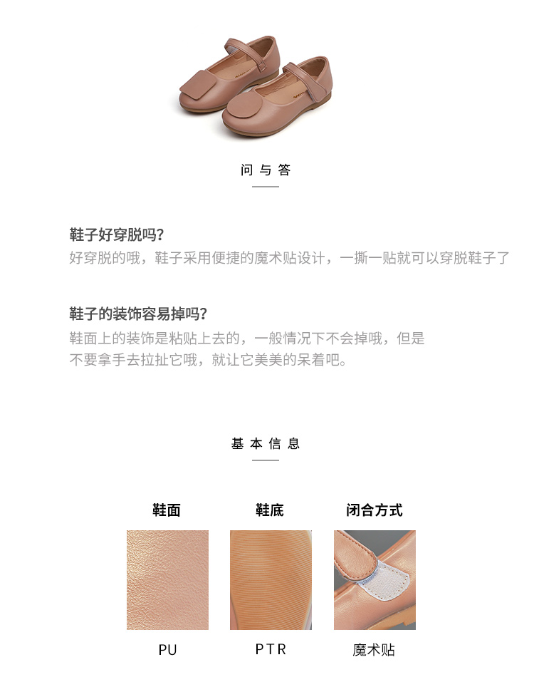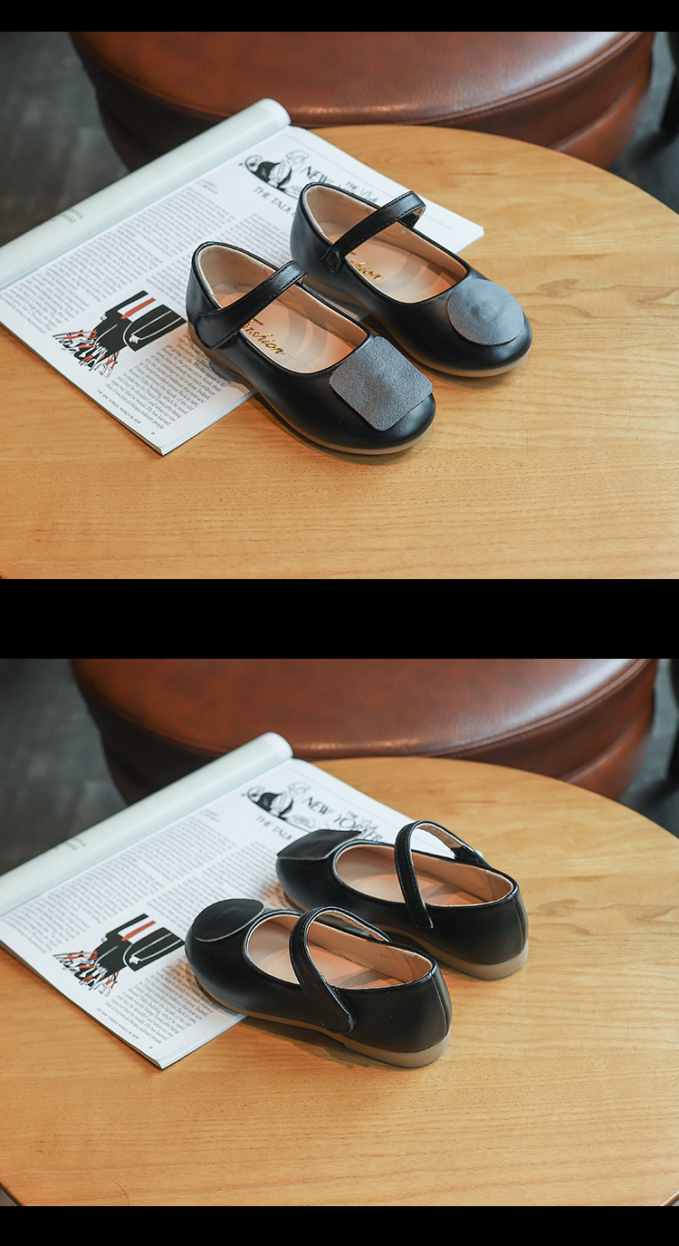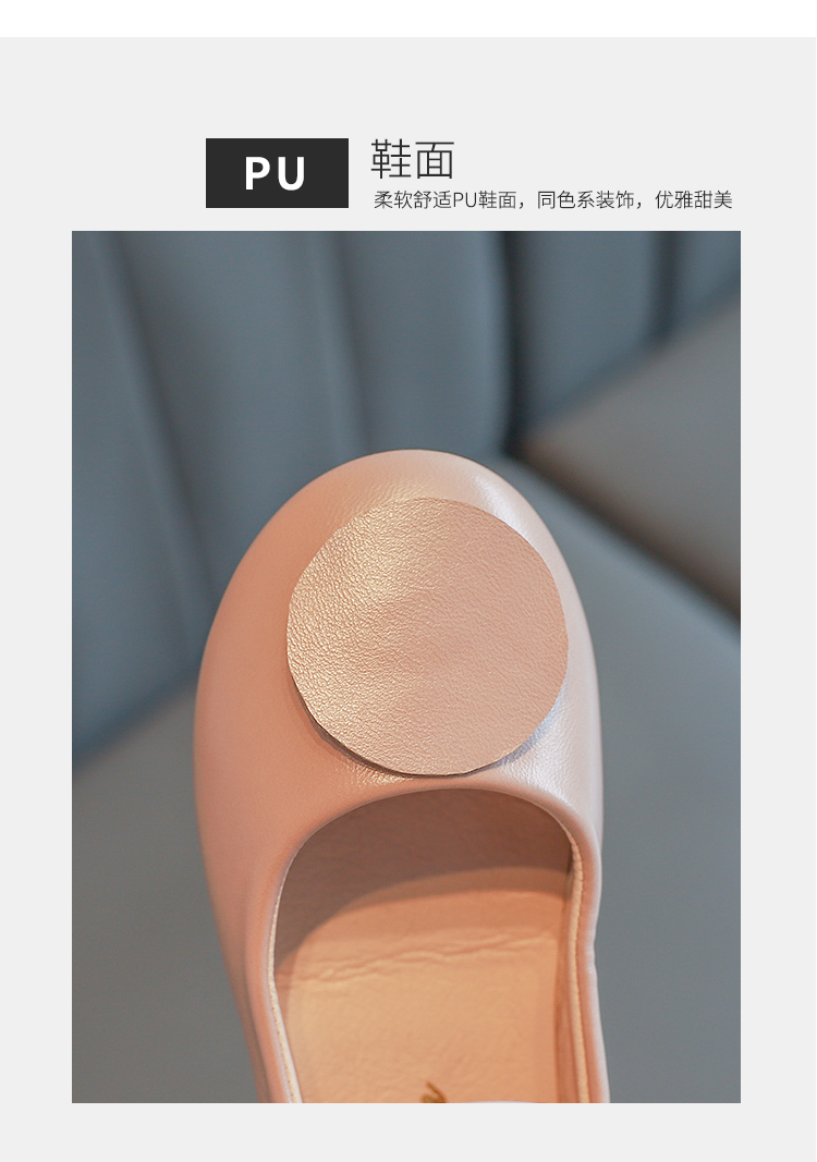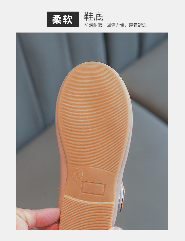 2019春秋新款女童皮鞋寶寶淺口公主單鞋軟底奶奶鞋兒童平底豆豆鞋1入