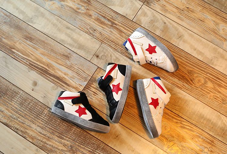 2018冬款新款兒童中幫鞋男童女童運動鞋板鞋休閑小白五角星運動鞋1入