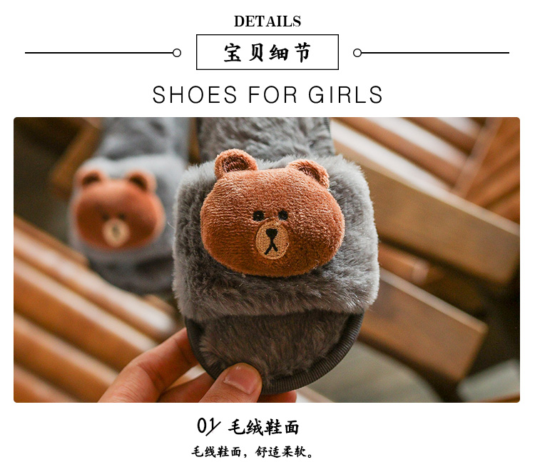 2019秋冬新款卡通兔子男女童棉家居拖鞋加棉室內百搭家居鞋一字拖1入