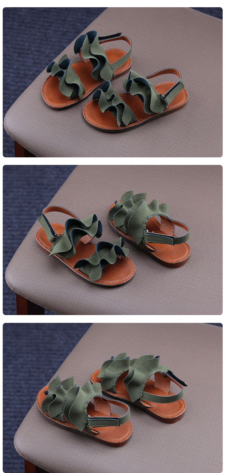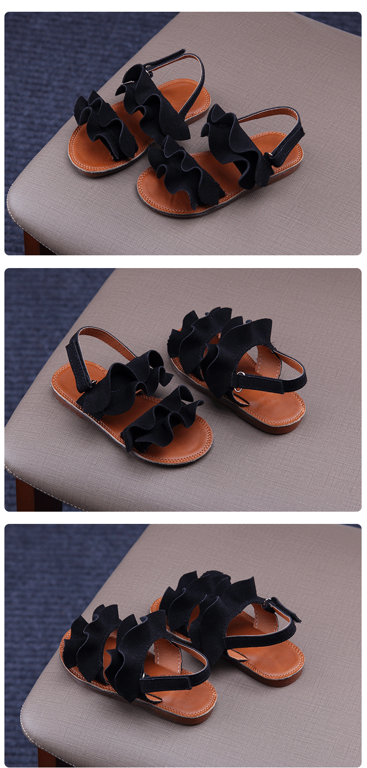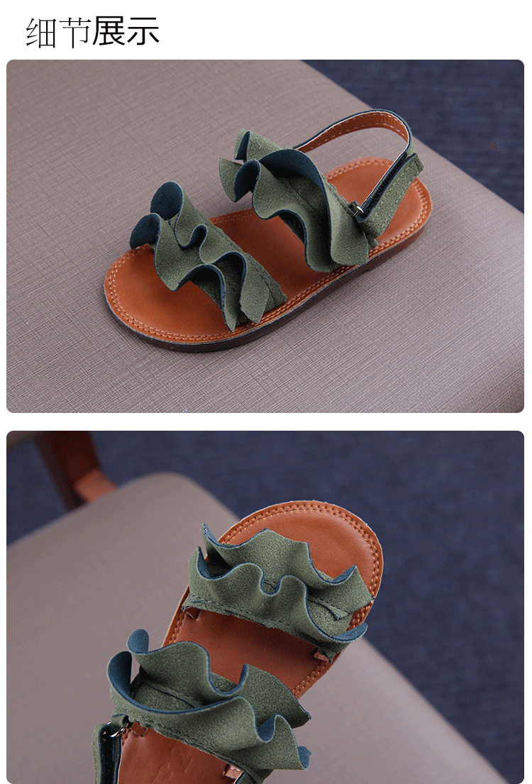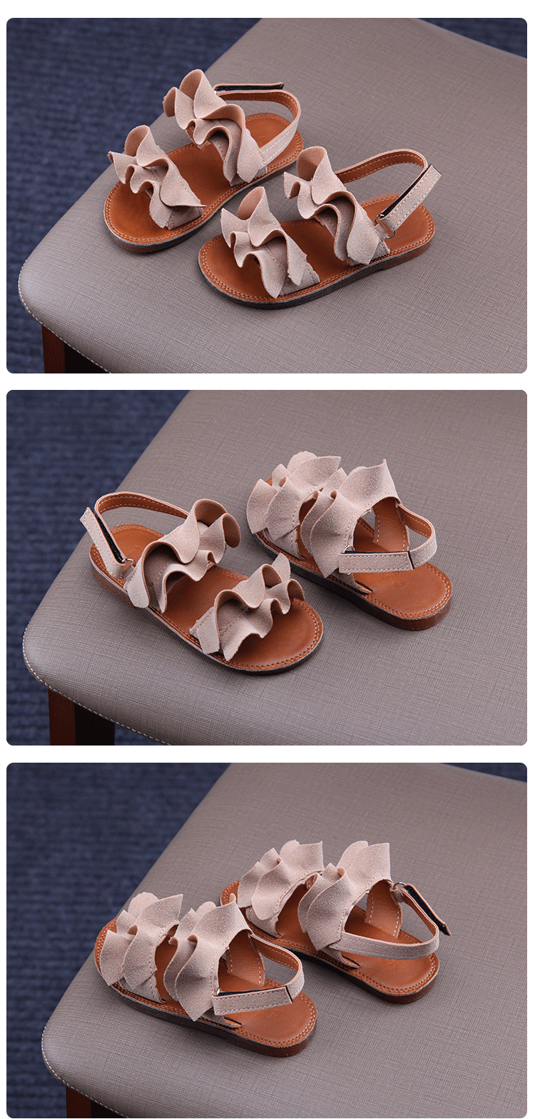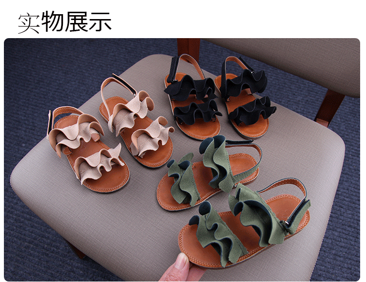 2019夏季款兒童涼鞋女童木耳花邊露趾涼鞋小女孩公主鞋學生沙灘鞋1入