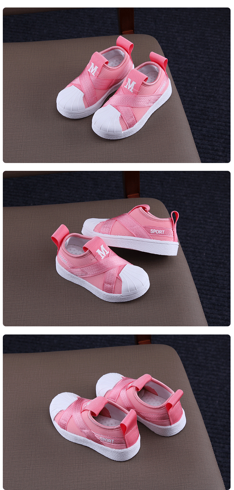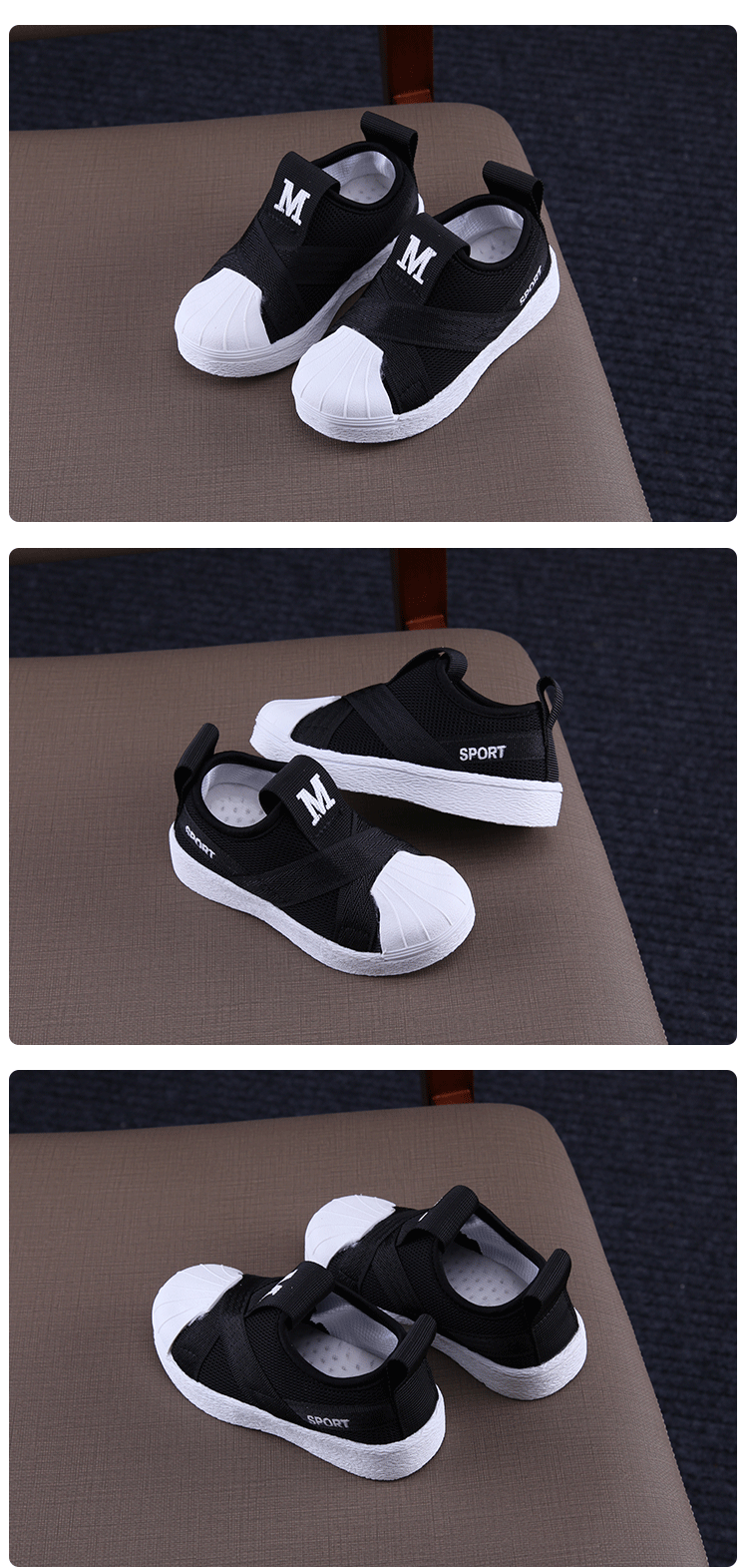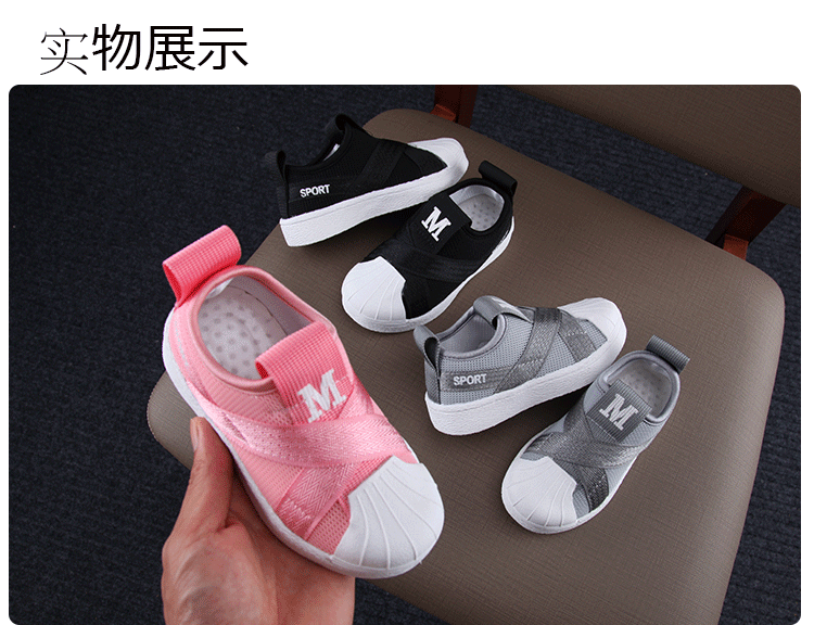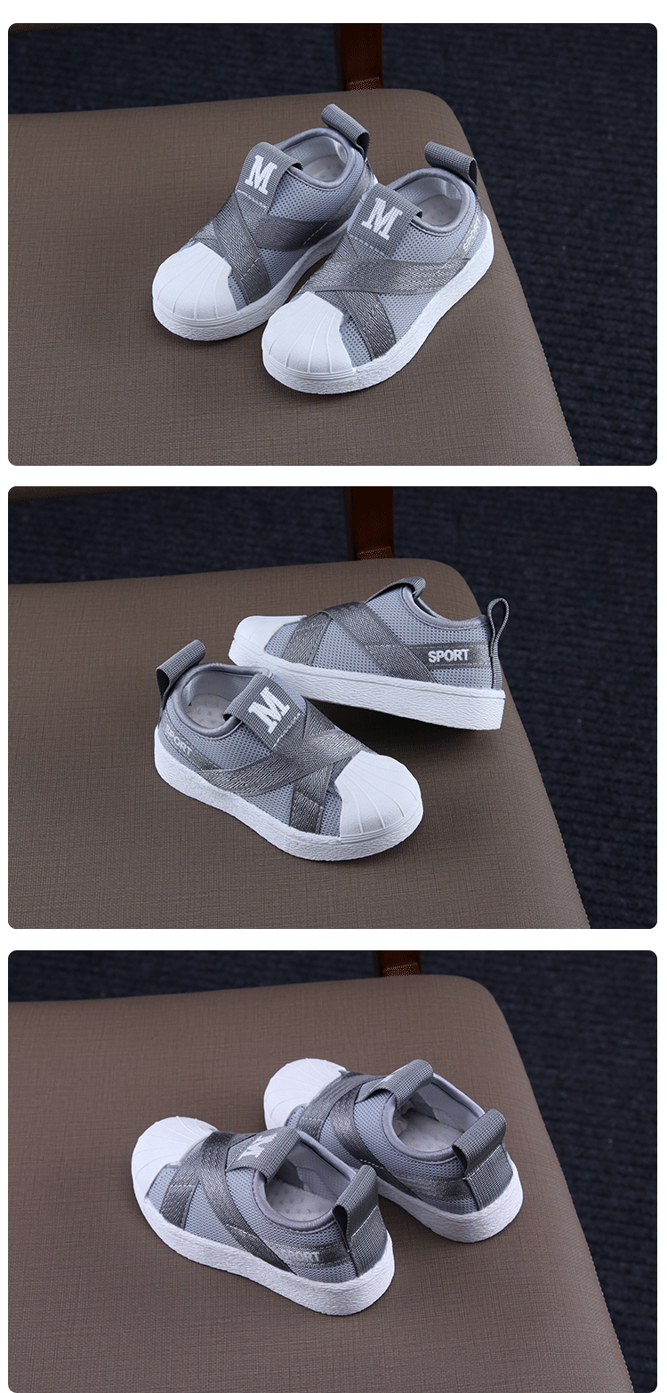 2019秋季新款女童網面運動鞋韓版百搭男童貝殼頭板鞋學生休閑潮鞋1入