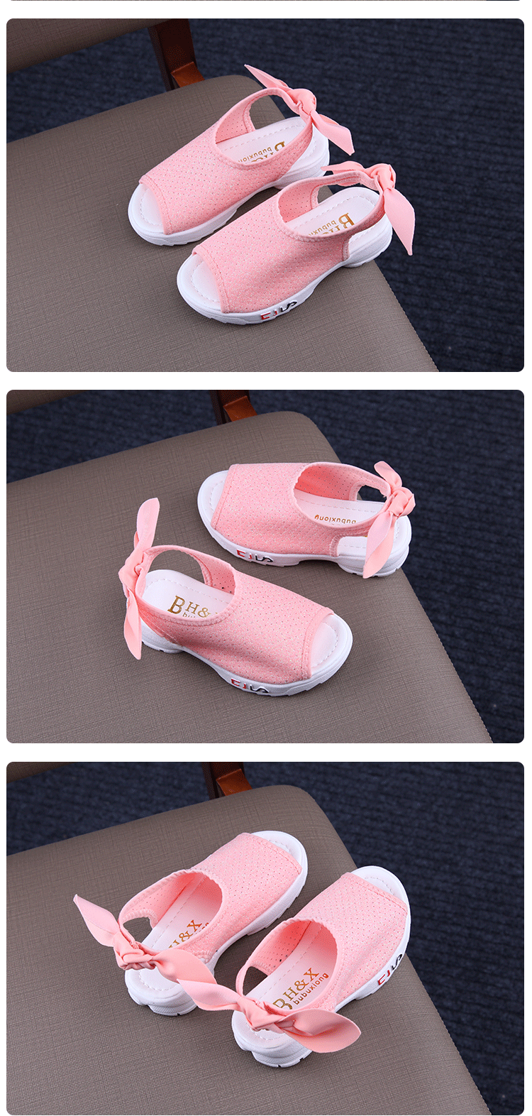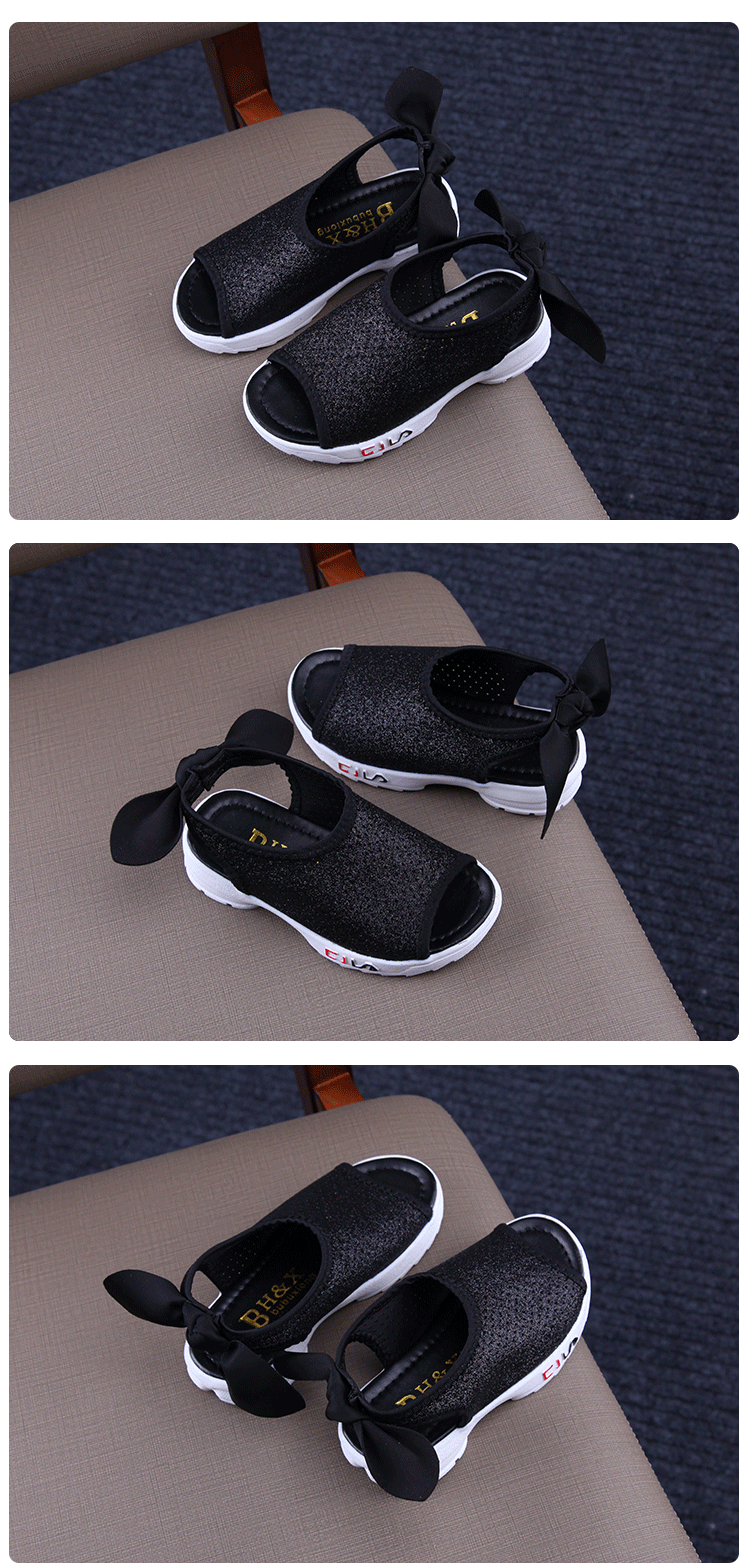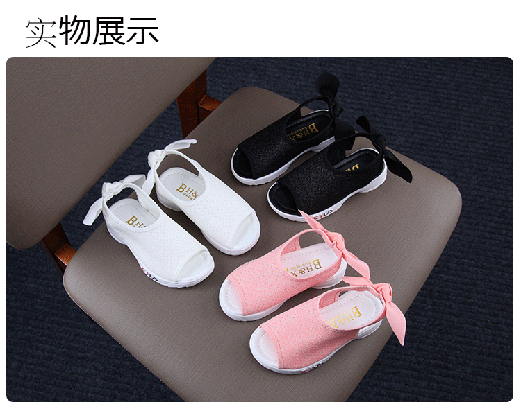 2019夏季新款兒童魚嘴涼鞋女童厚底涼鞋學生百搭韓版平底簡約涼鞋1入