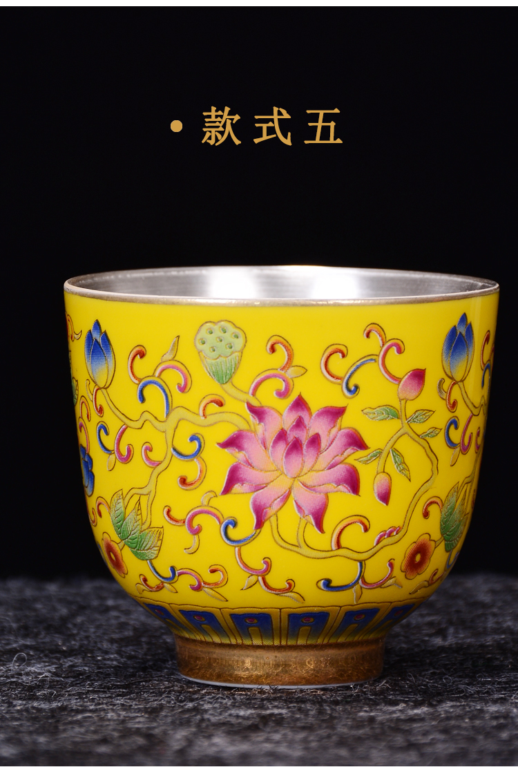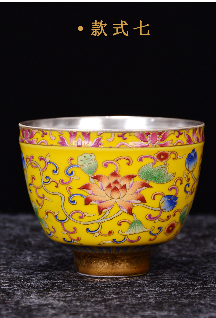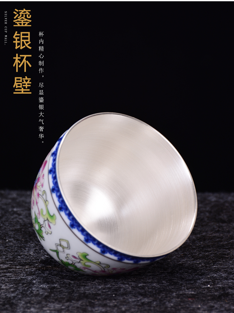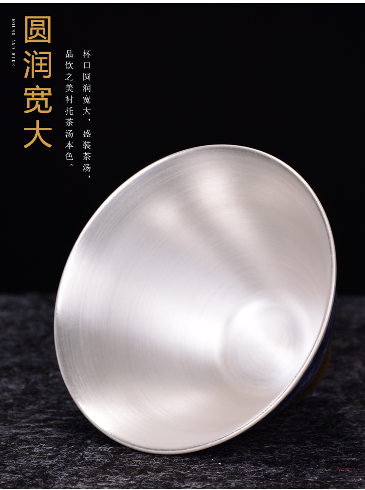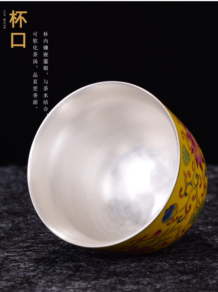 陶生活 999純銀茶杯手工鎏銀品茗主人杯子琺瑯彩大號品茗功夫茶杯1入