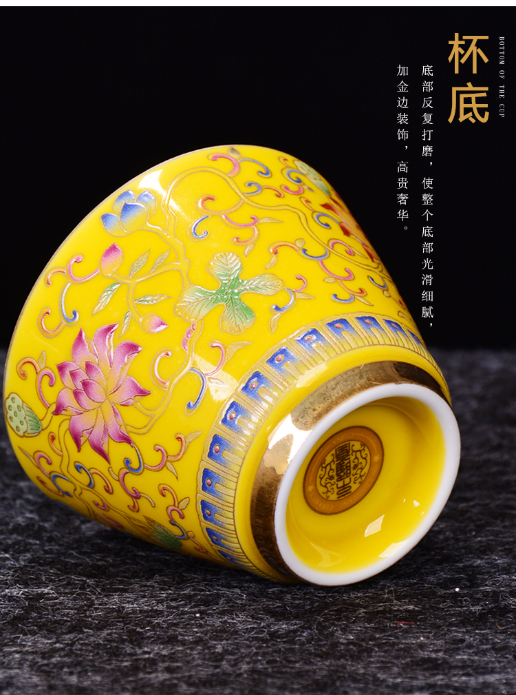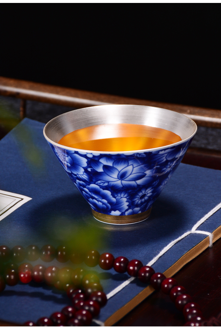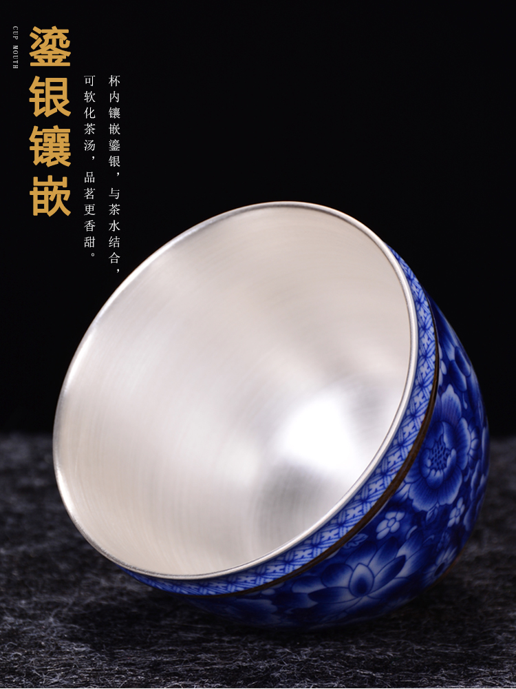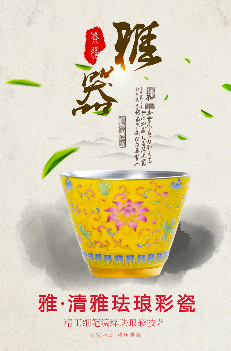 陶生活 999純銀茶杯手工鎏銀品茗主人杯子琺瑯彩大號品茗功夫茶杯1入