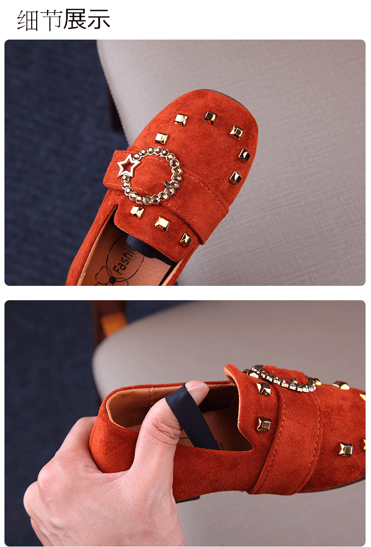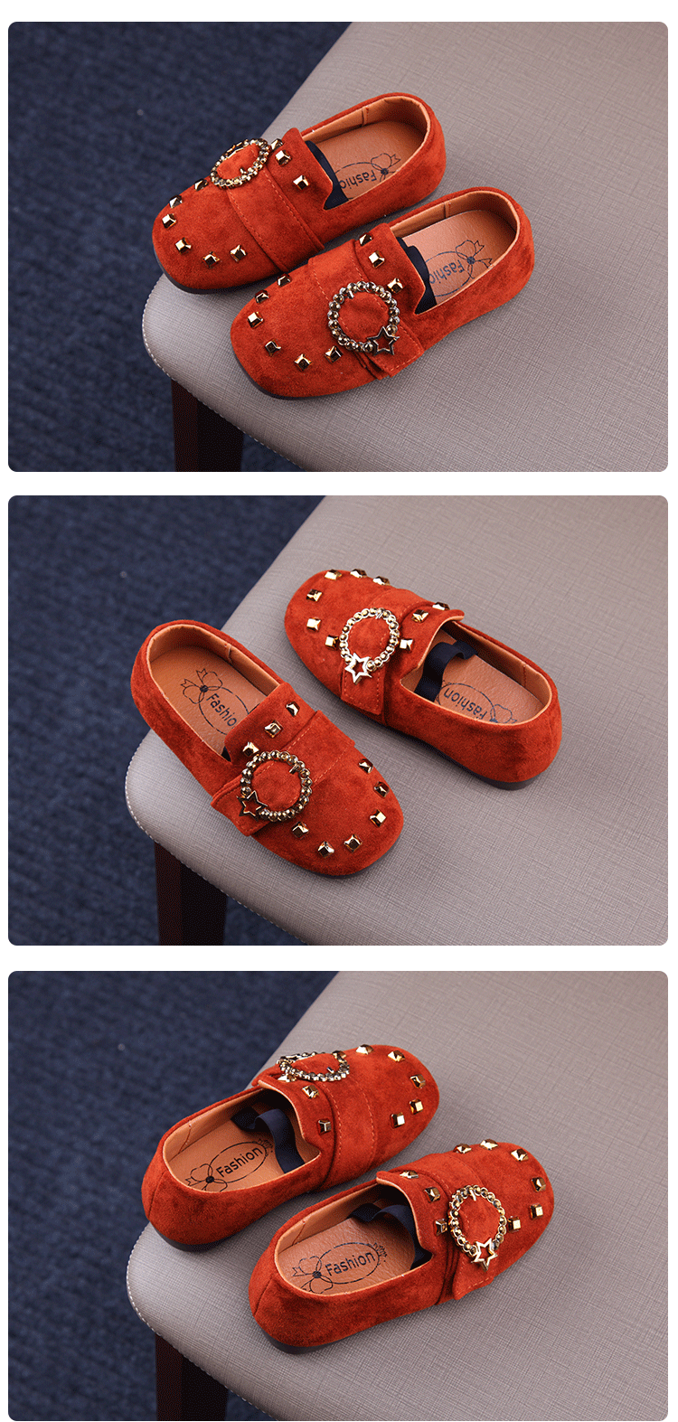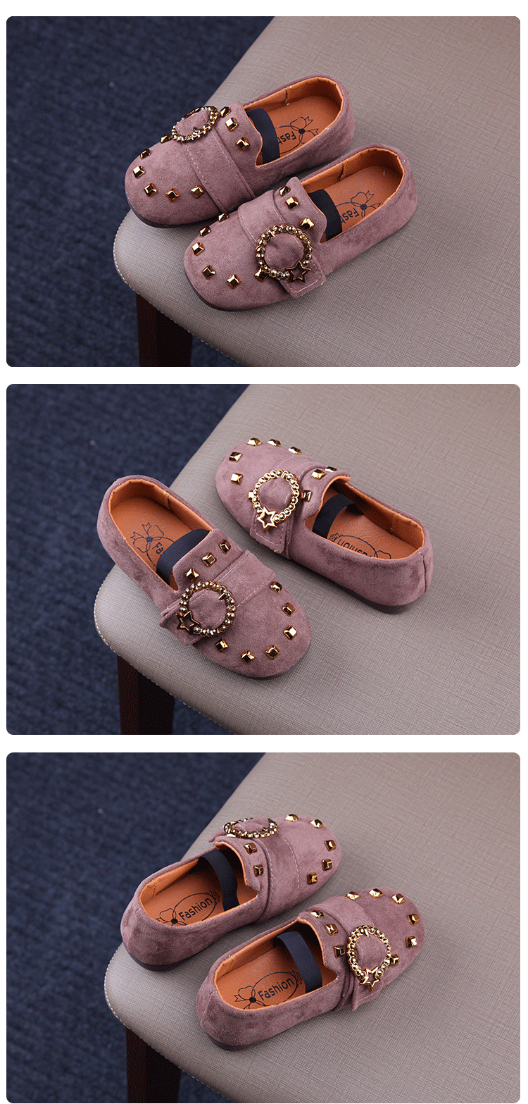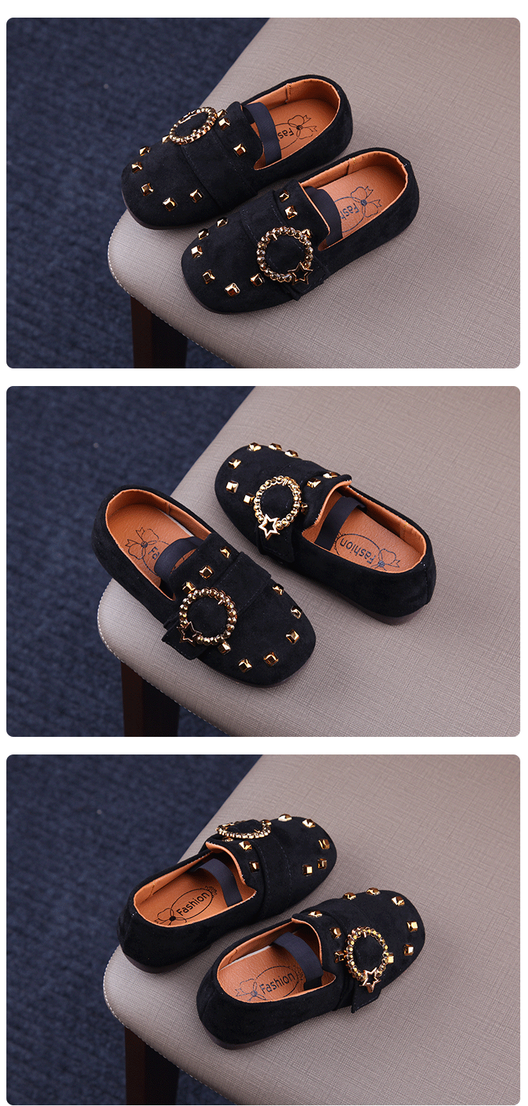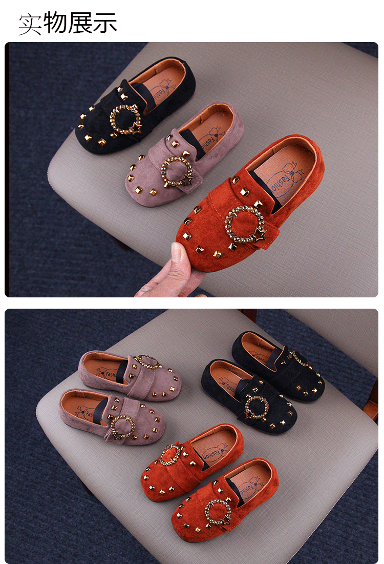 2019秋季新款女童皮鞋單鞋兒童豆豆鞋男女童韓版鉚釘公主軟底皮鞋1入