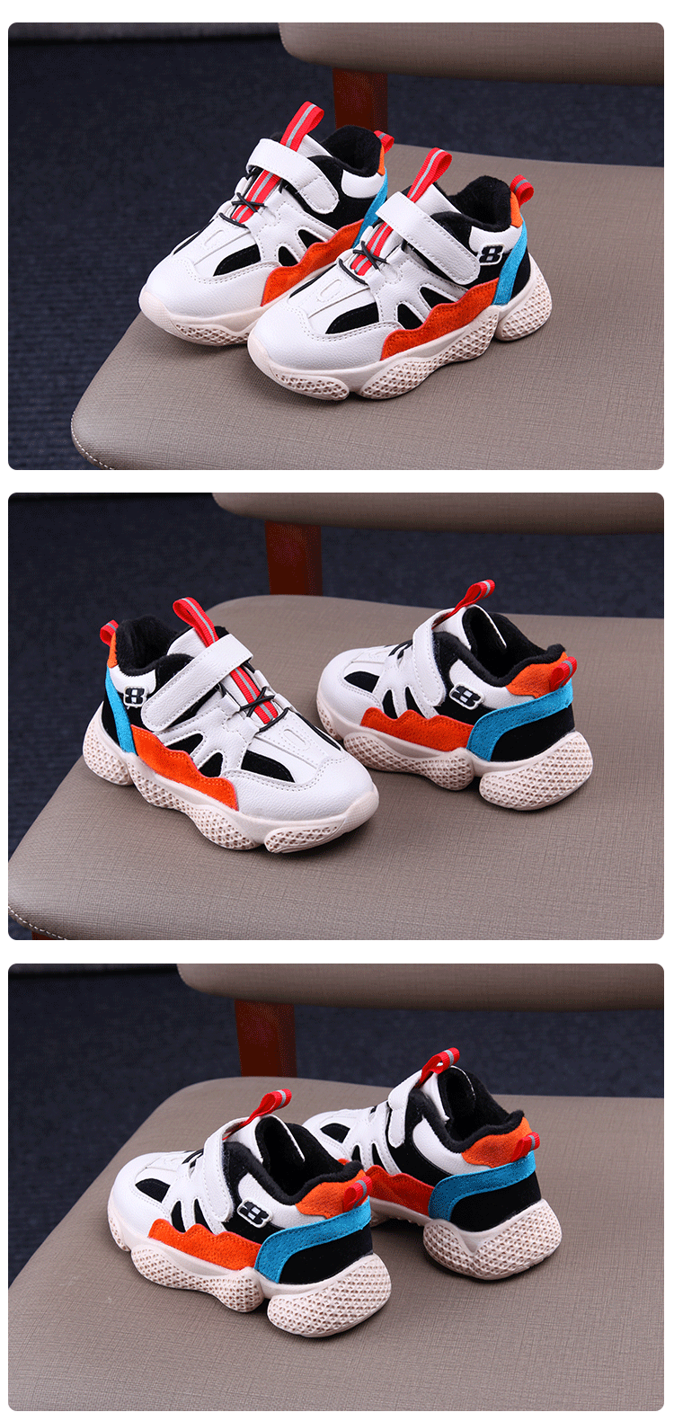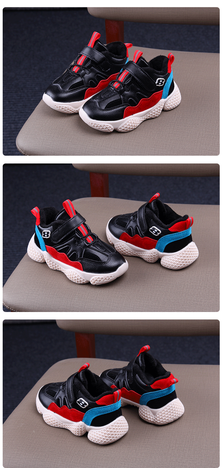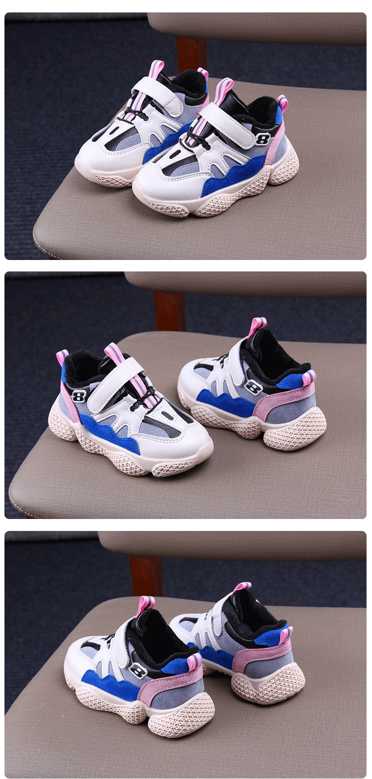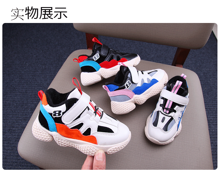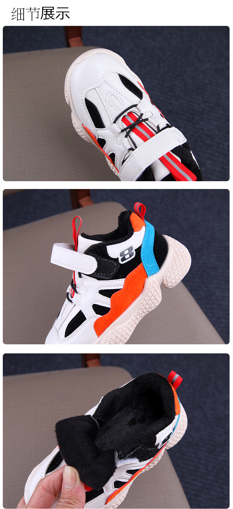 2018冬新款男女童反皮加絨拼色運動鞋兒童棉鞋寶寶鞋老爹童鞋網紅1入