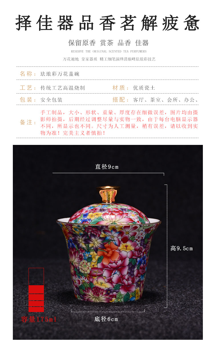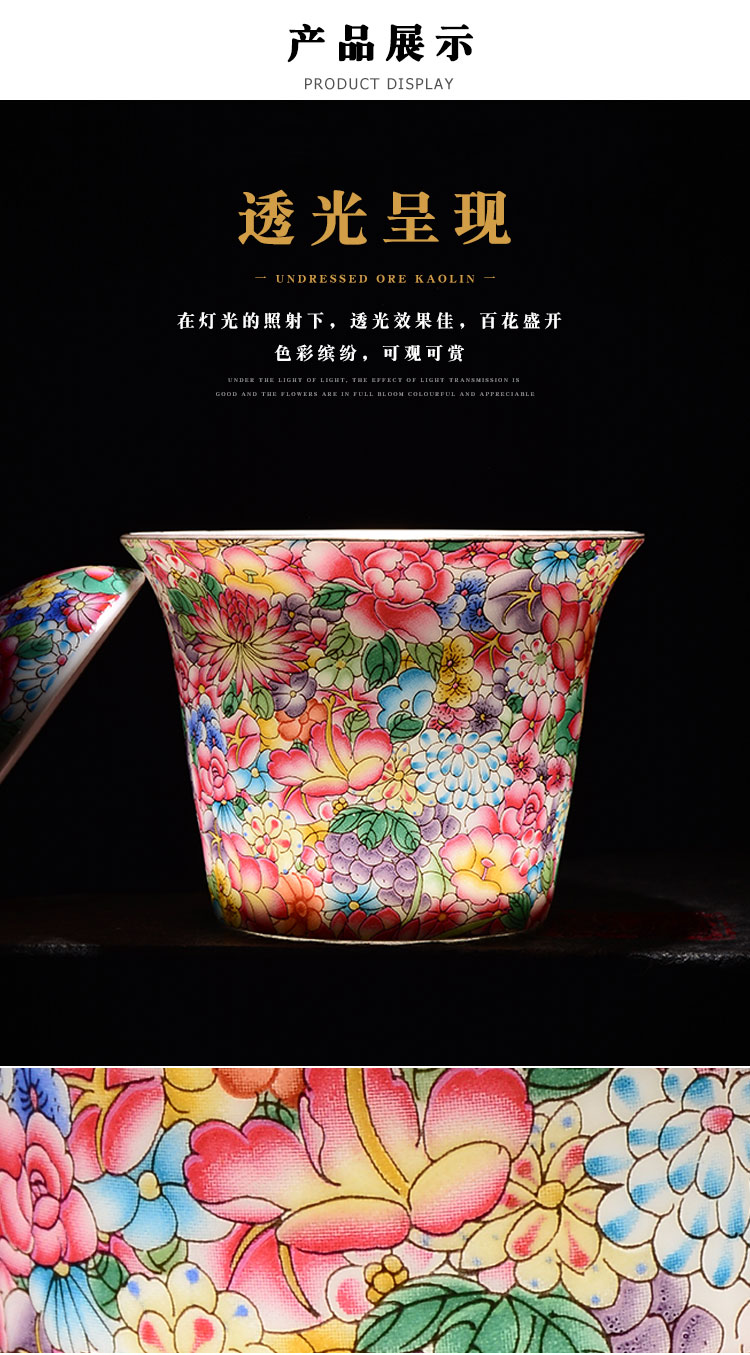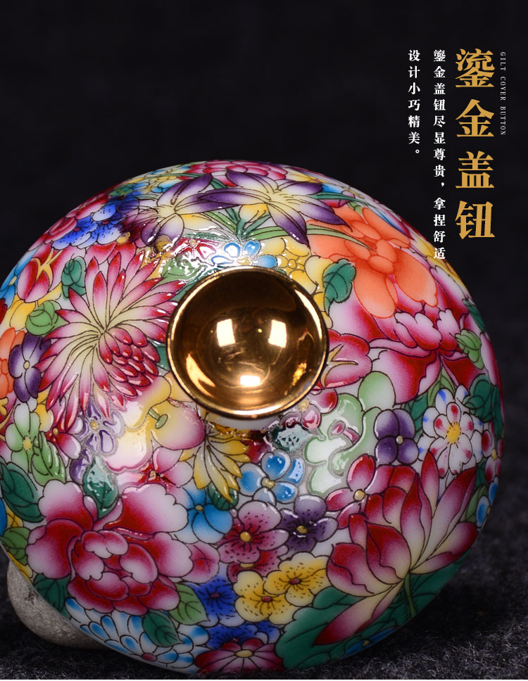 陶生活景德鎮蓋碗茶杯茶具茶碗大號萬花瓷泡茶碗陶瓷三才碗手抓壺1入