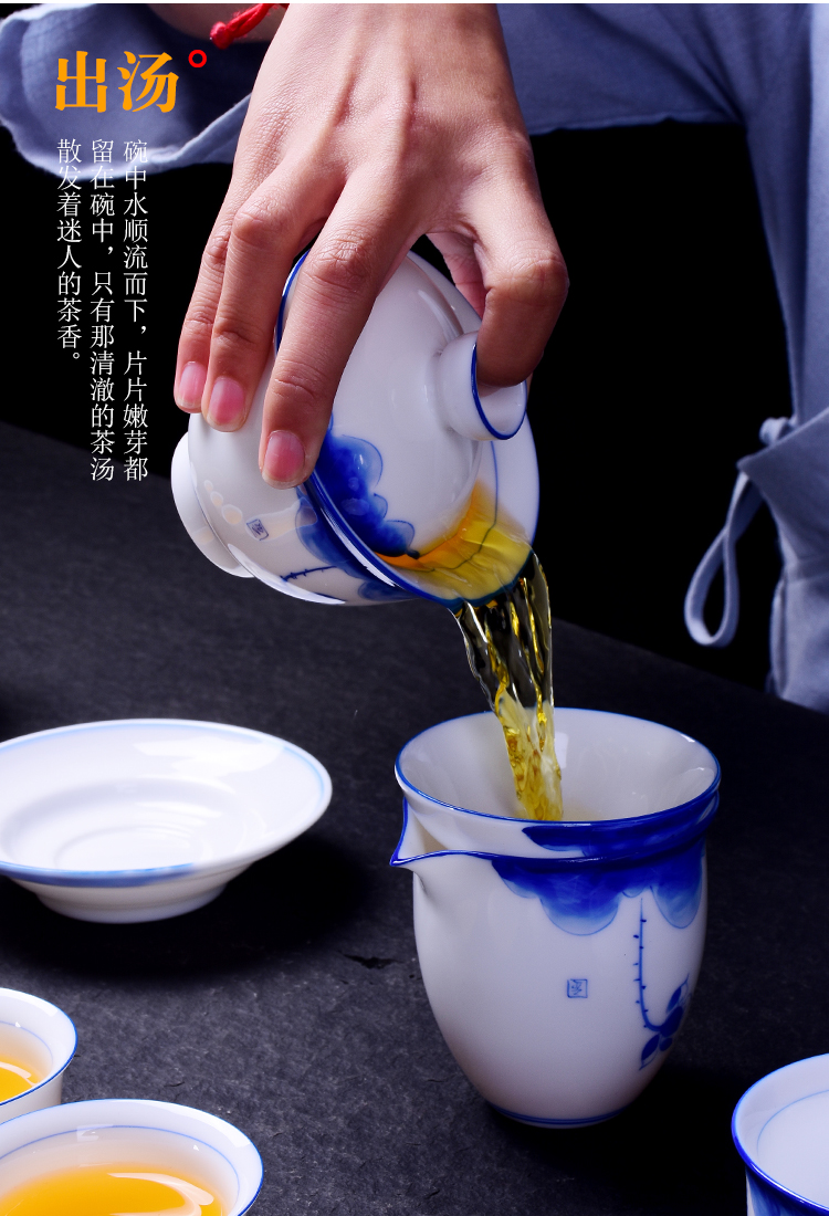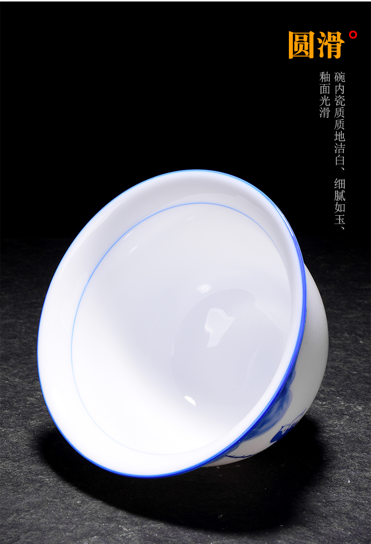 景德鎮陶瓷手繪青花瓷荷韻三才蓋碗功夫茶具泡茶碗三才蓋碗手抓壺1入