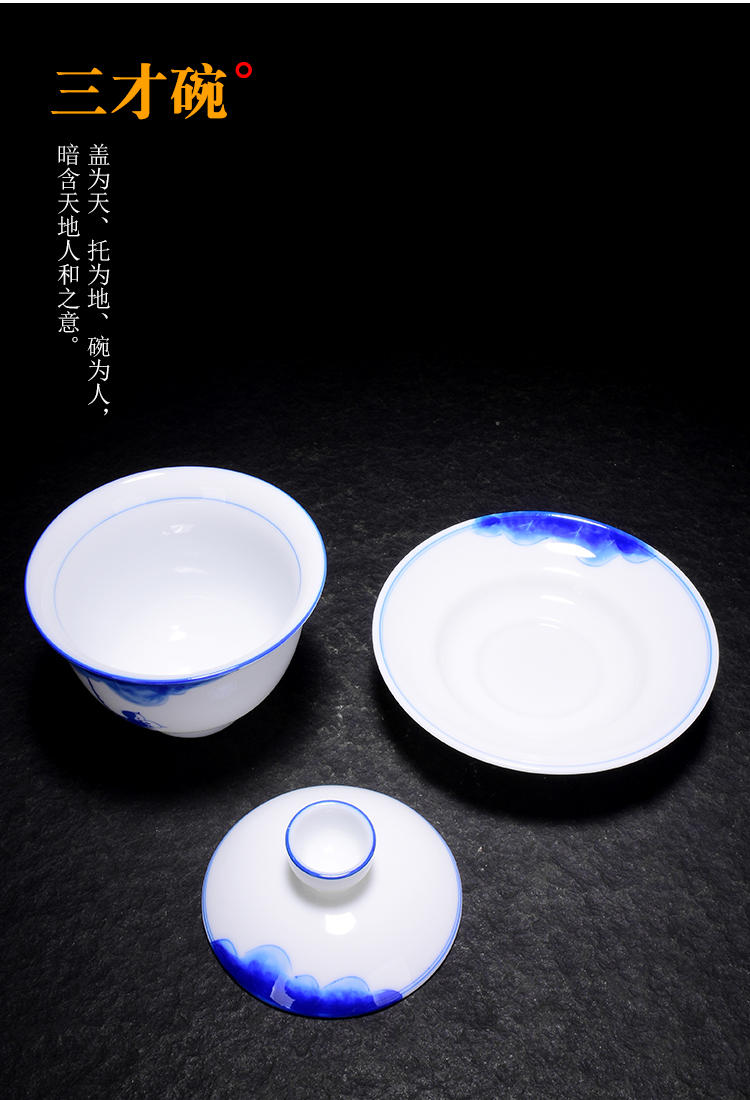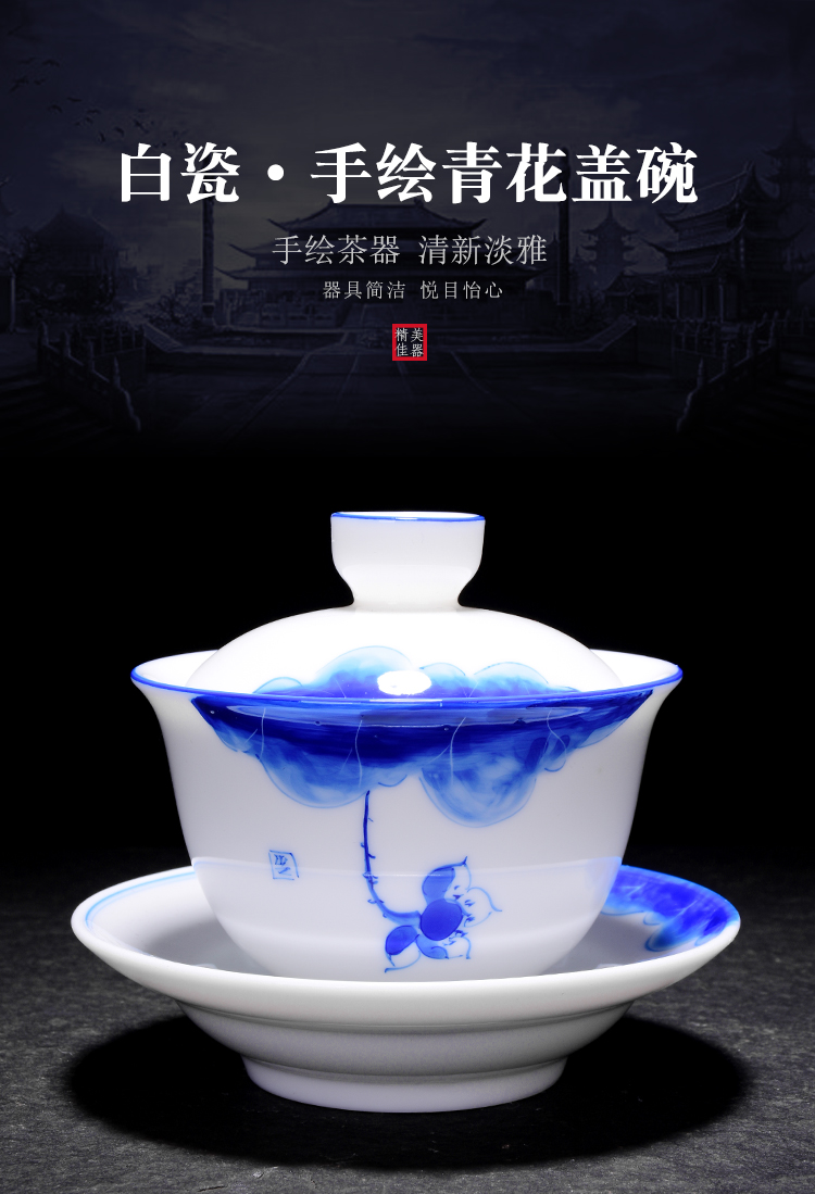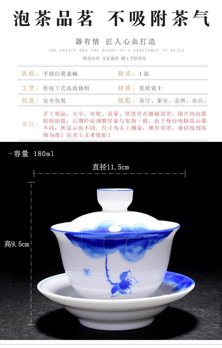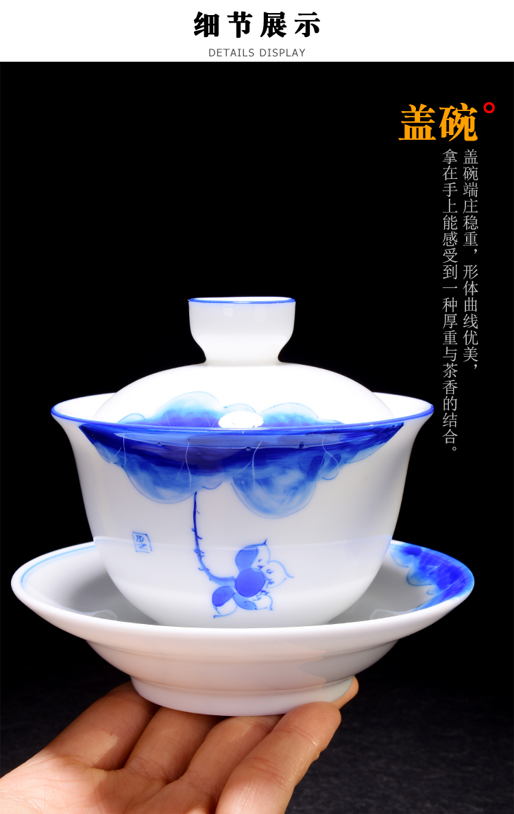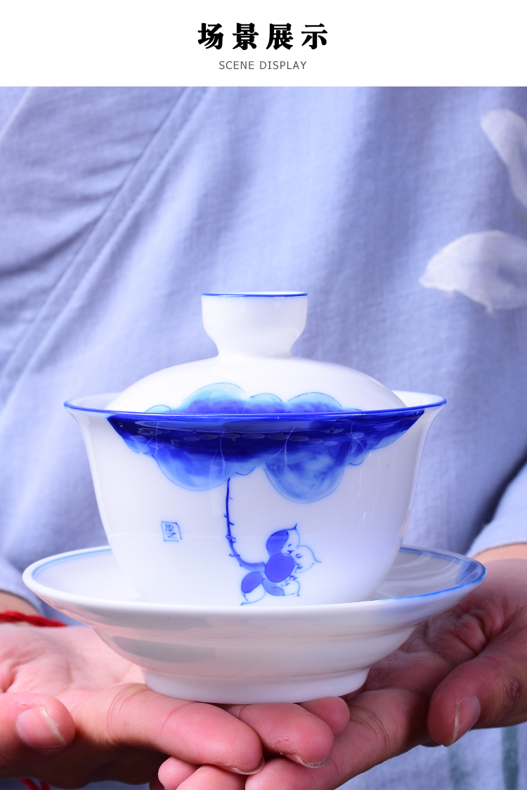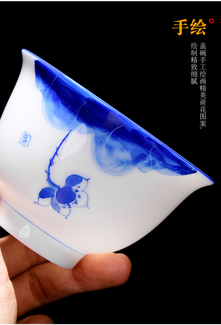 [2]景德鎮陶瓷手繪青花瓷荷韻三才蓋碗功夫茶具泡茶碗三才蓋碗手抓壺1入