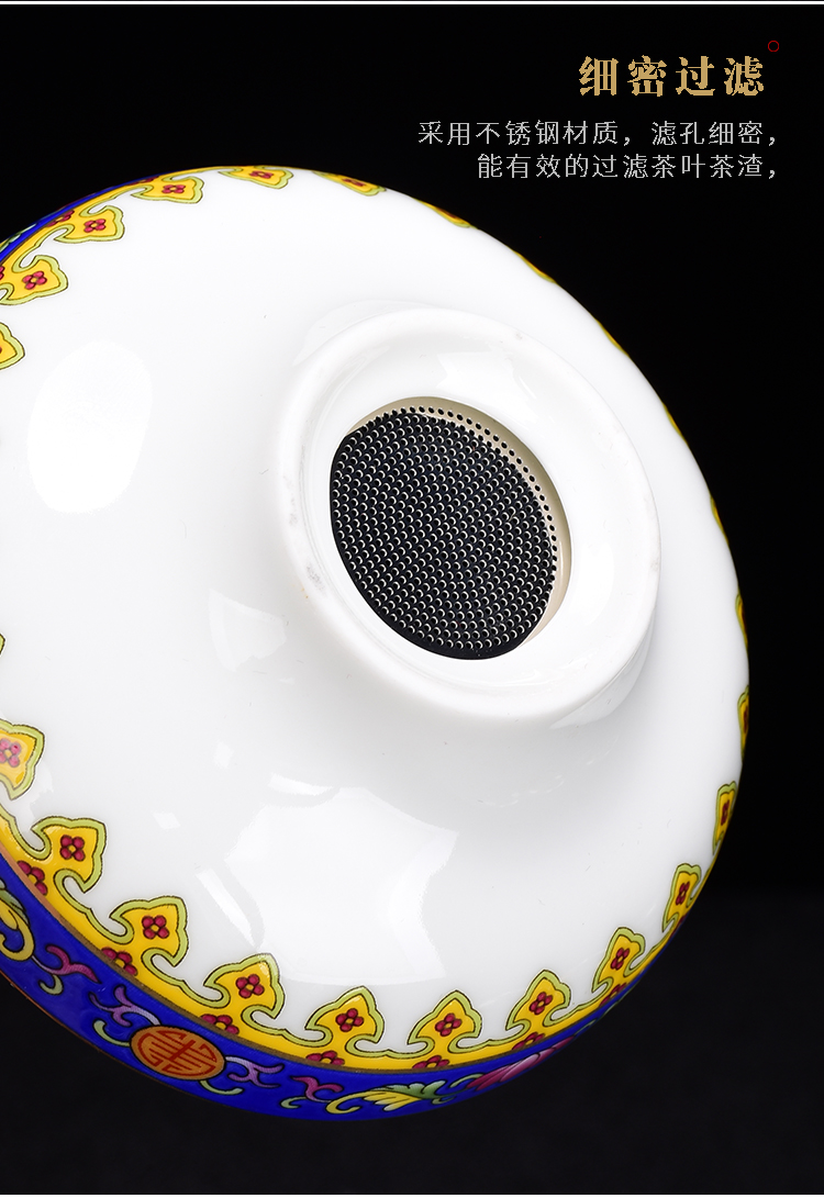 陶生活景德鎮琺瑯彩國色天香茶濾陶瓷配件茶漏過濾茶渣茶隔濾茶器1入