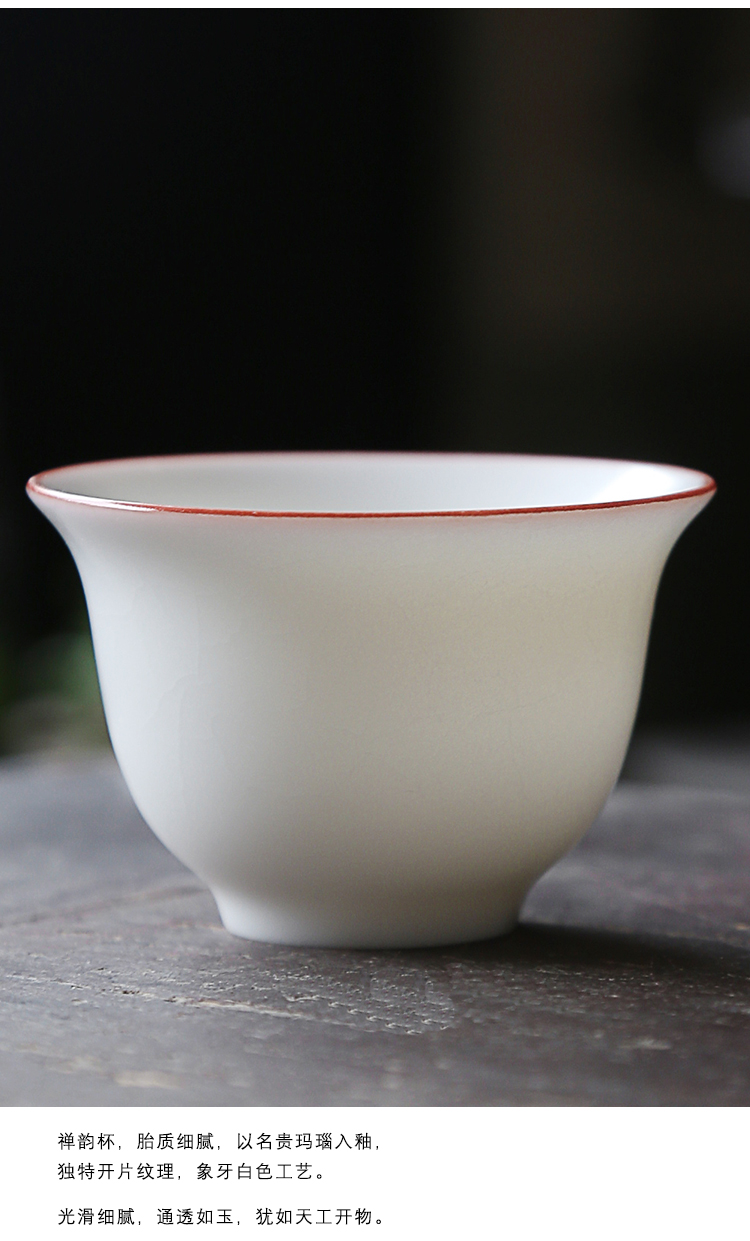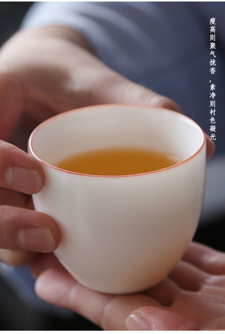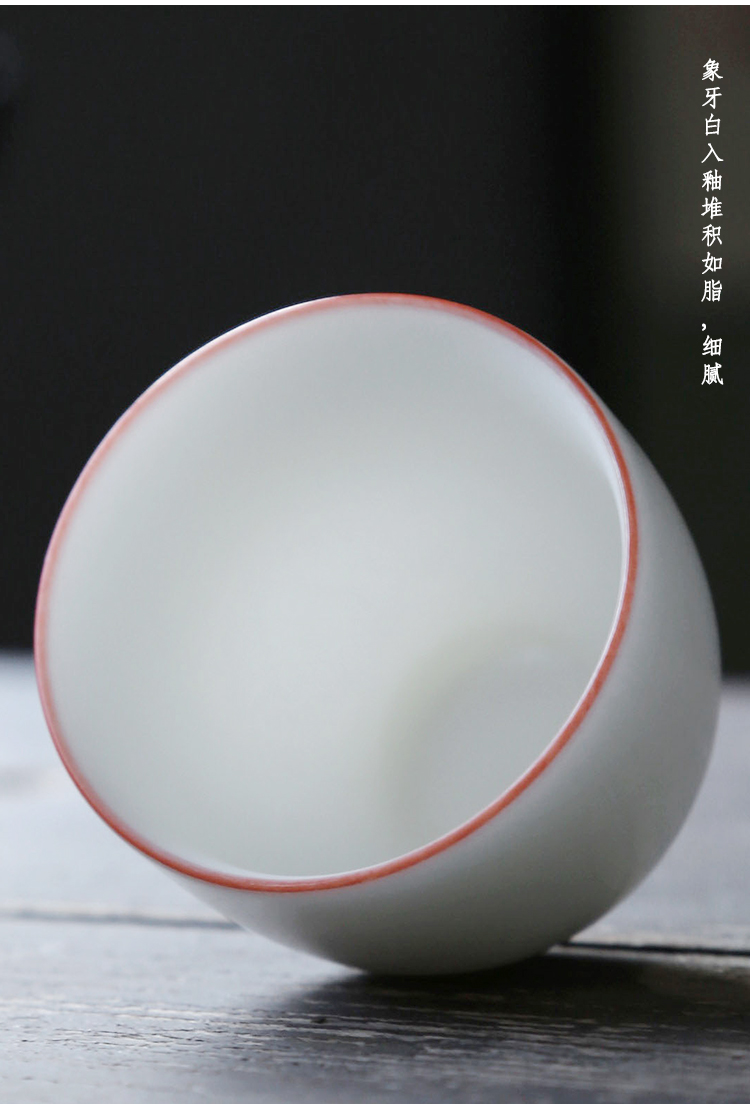 陶生活 品茗杯汝窯 象牙白功夫茶杯陶瓷功夫茶具個人單杯汝瓷杯子1入