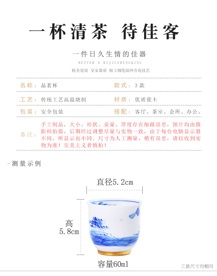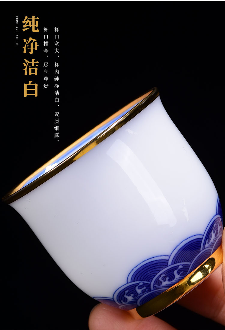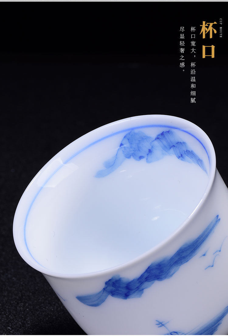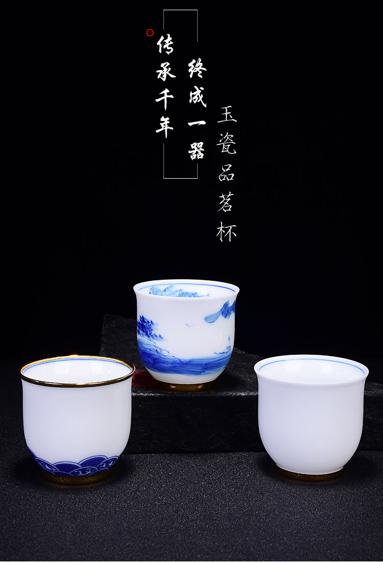 陶生活德化白瓷手繪茶杯品茗杯陶瓷主人杯功夫茶具普洱羊脂玉單杯1入