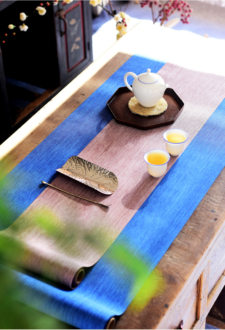 陶生活麻紋防水茶席禪意中式桌旗布藝茶桌墊功夫茶具茶道茶席零配1入